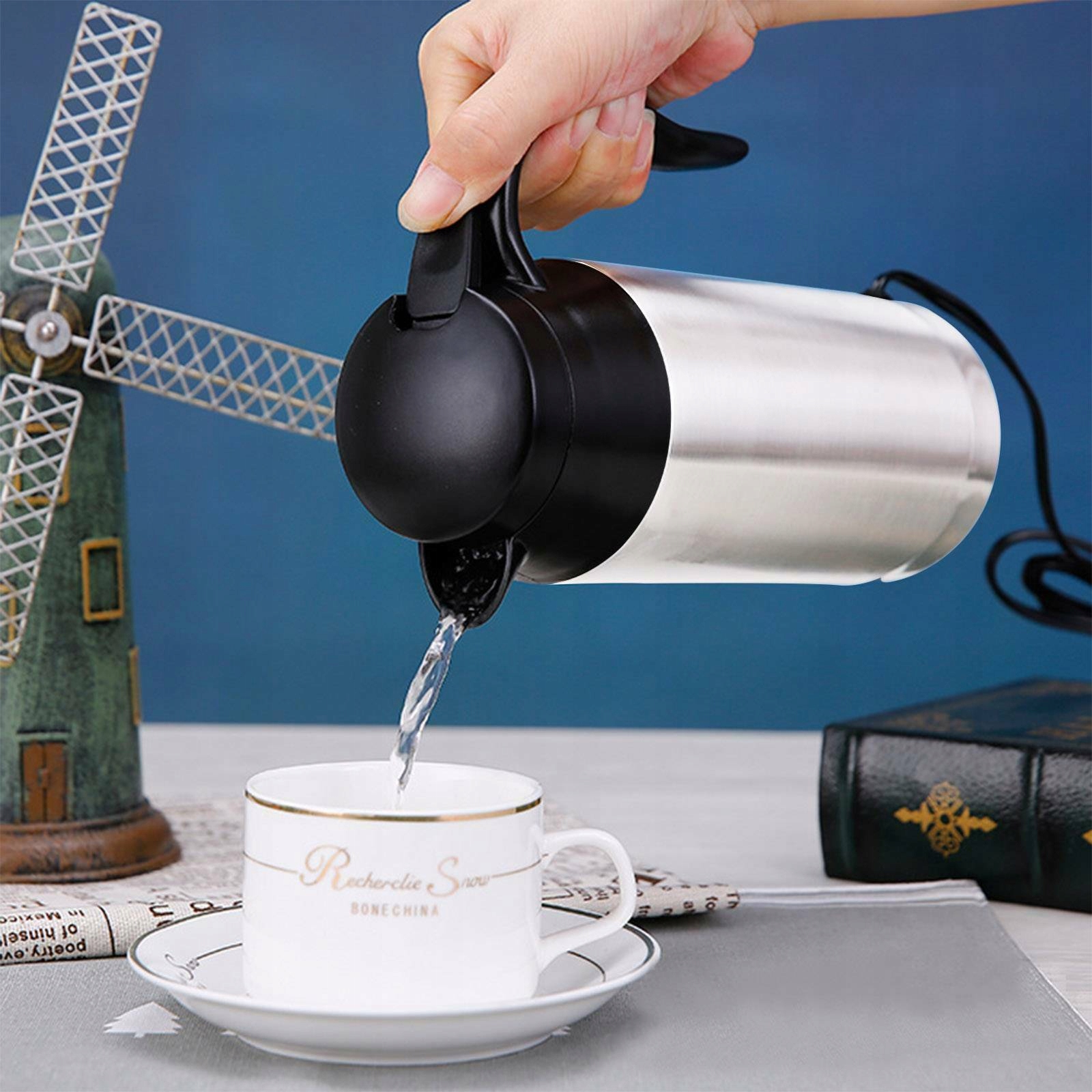 🍵🍵【Ємність 750 мл і 12 В універсальний автомобіль】Кружка для електромобіля на 750 мл, ідеально підходить для використання в дорозі, коли ви вирушаєте з сім’єю, хороший електричний термос для кемпінгу, щоб зберегти тепло вашої кави. Електричний чайник із живленням від автомобільного прикурювача DC 12 В, універсальний для автомобілів з джерелом живлення 12 В, дозволяє пити гарячу воду, каву, молоко, чай у дорозі