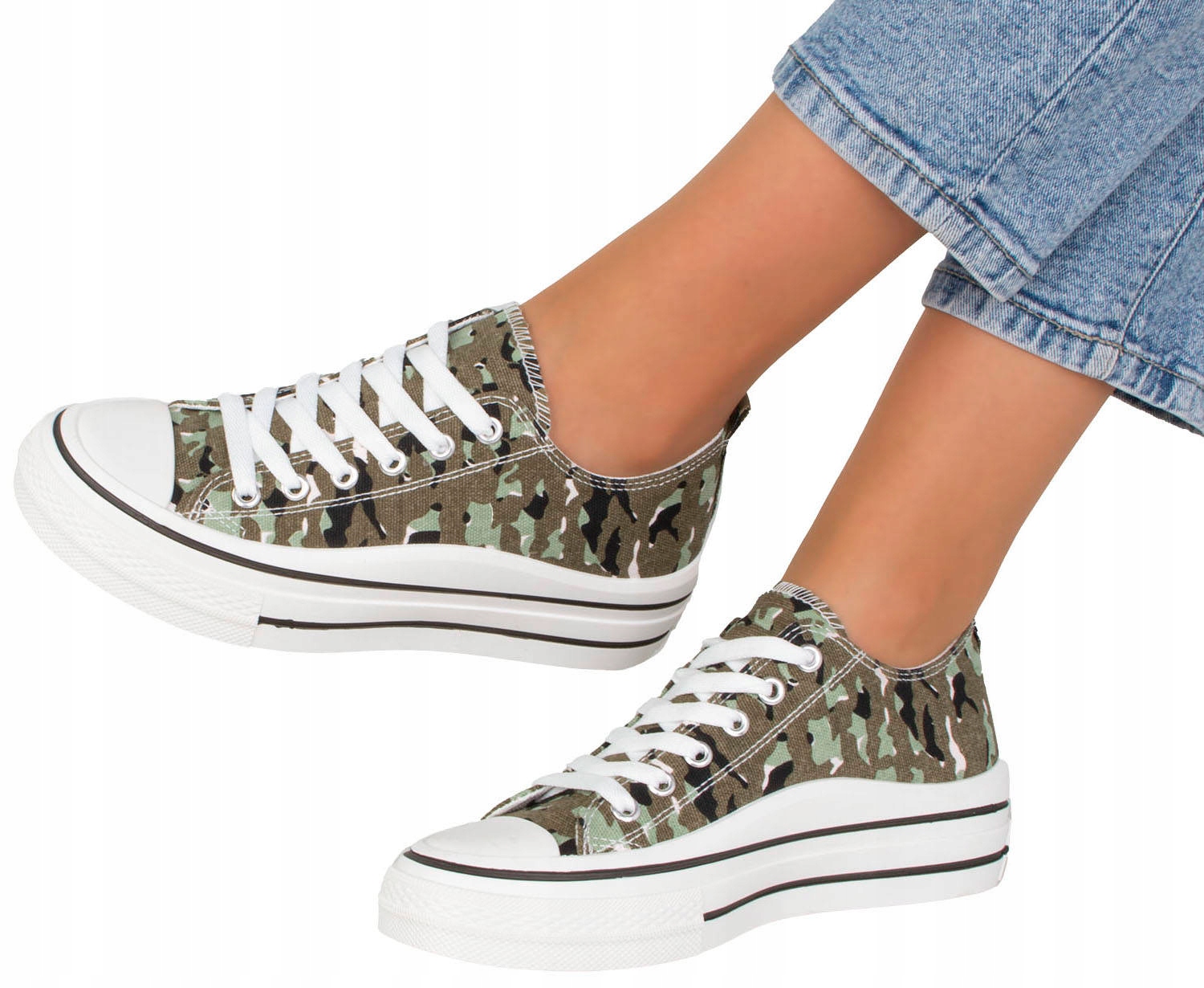 7589 ЗЕЛЕНІ НИЗЬКІ КРОСІВКИ НА ПЛАТФОРМІ З КАМУФЛЯЖОМ 38