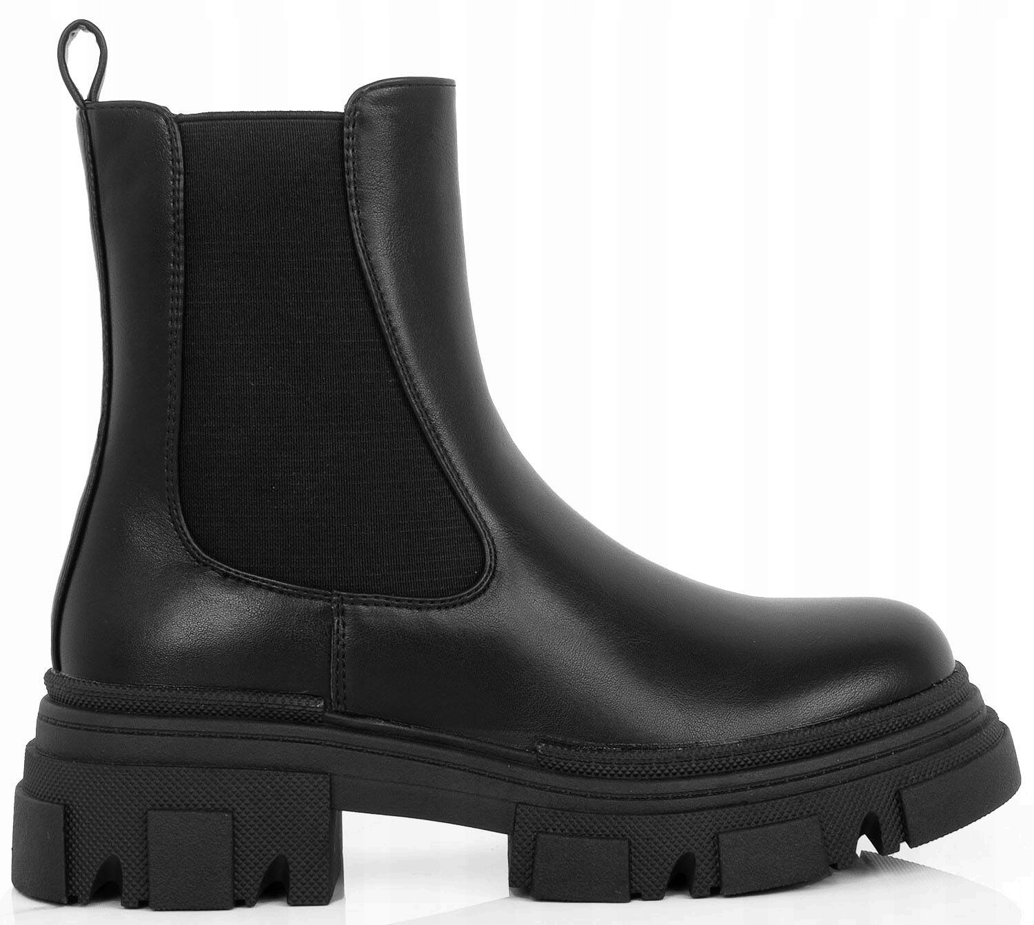7672 ЧОРНІ ШКІРЯНІ ЧОБОТИНКИ НА ПЛАТФОРМІ 40