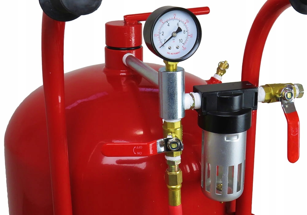 Сандбастер був вдосконалений в кожній деталі інженерами, щоб відповідати очікуванням кожного користувача, саме тому пісковикастер був додатково обладнаний манометром з дегідратами повітря. Дегідрат, зневоднення, що використовується в пісковиках, зменшує кількість води у повітрі до такої кількості, що трійник змішування піску з повітрям не блокує.