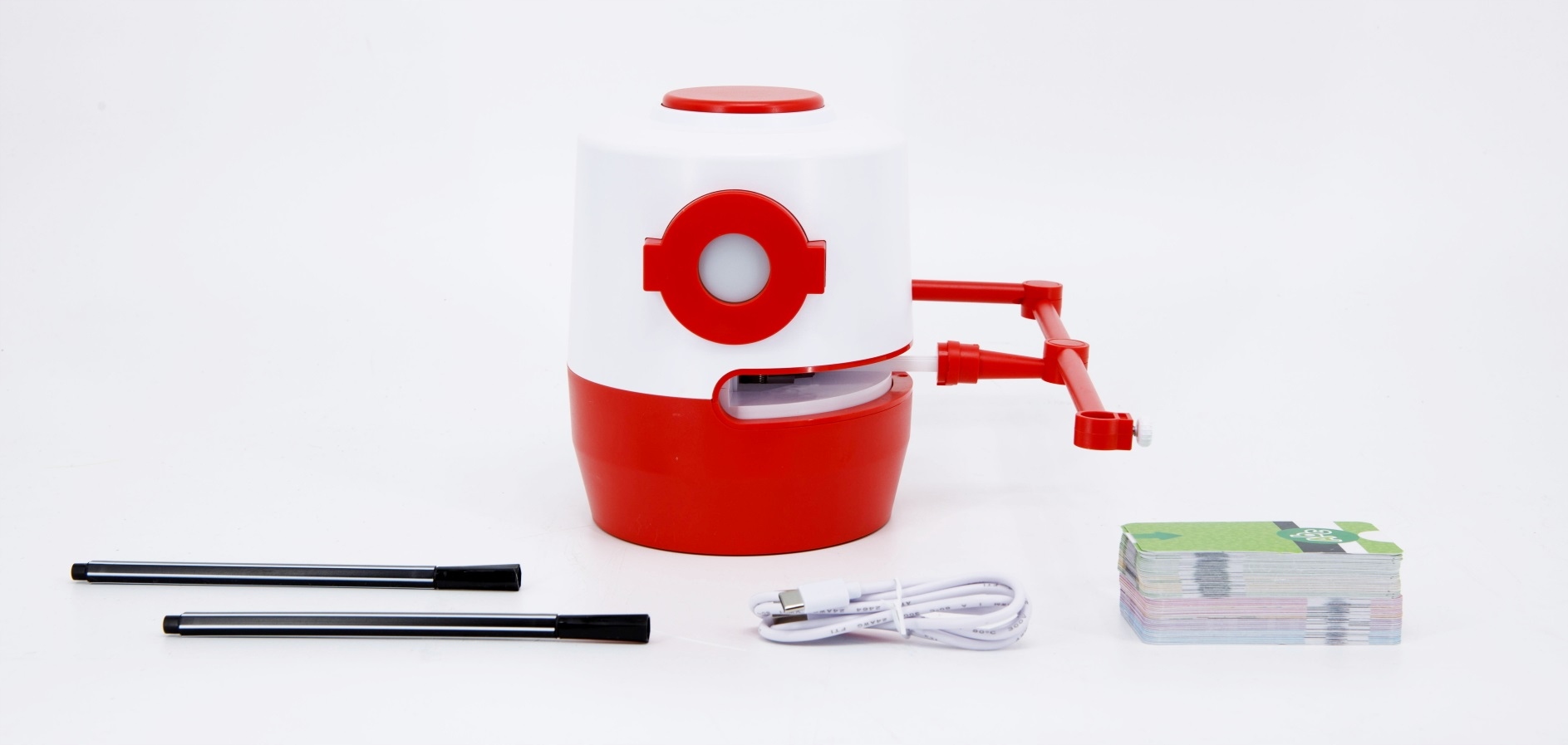 Управління роботом просте та інтуїтивно зрозуміле. Просто зарядіть іграшку зручним способом, підключіть руку для малювання, виберіть цікаву картку, вставте її в «око» робота та дотримуйтесь інструкцій.