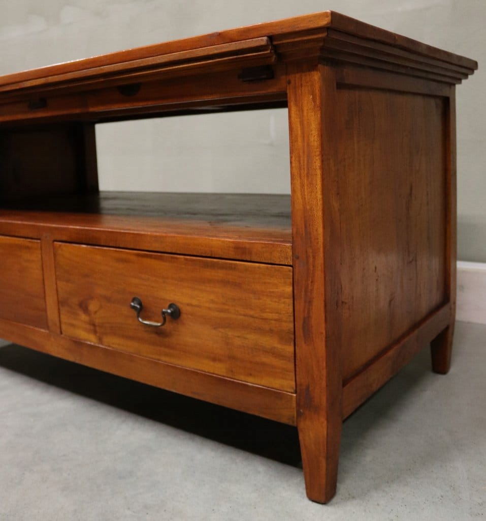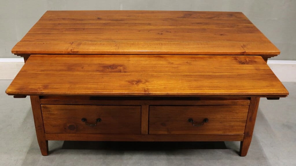 Стан показаний на фото - вставляється. Глибокі прохідні ящики - додаткова висувна верхня частина.
