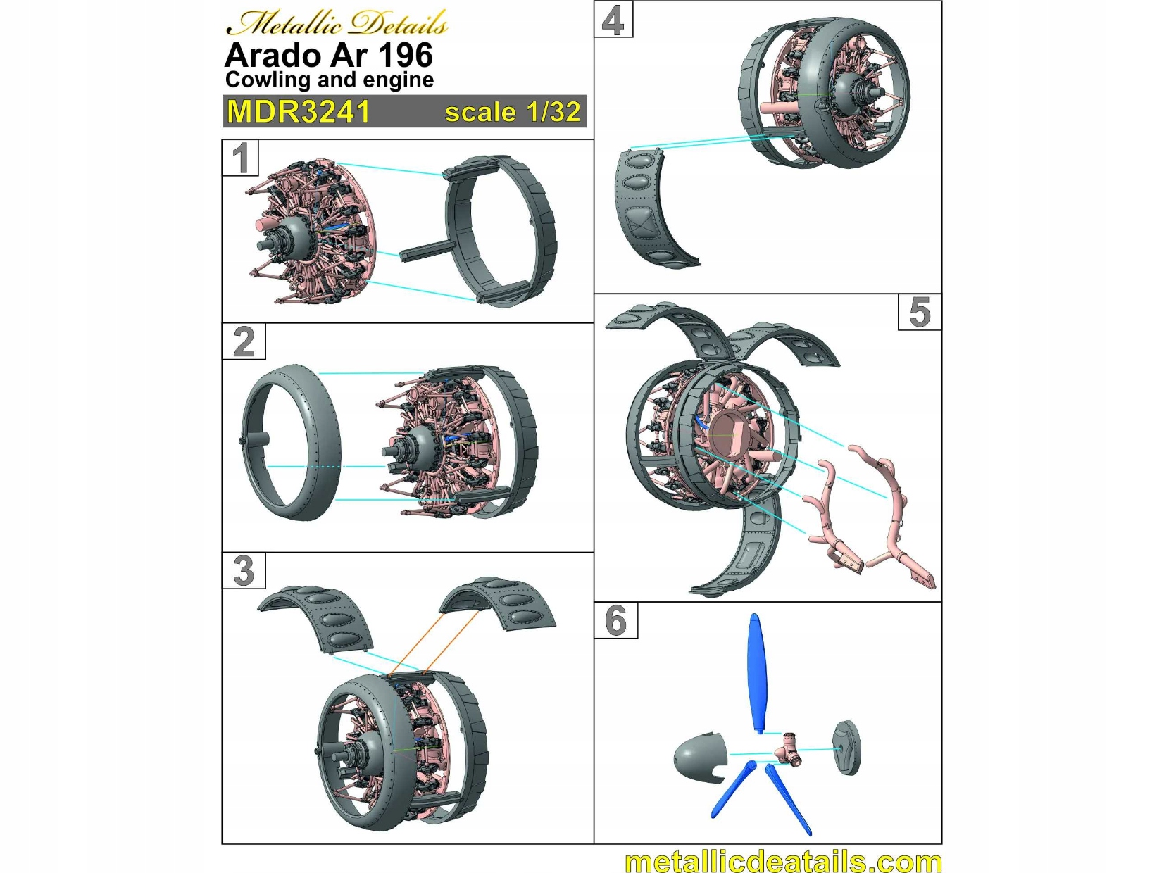 7адо Ar 196. Каулінг та двигун - металеві деталі MDR3241 Шкала 1/32