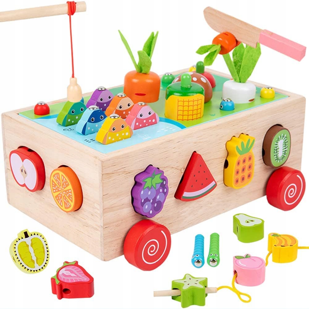 дерев'яні іграшки Монтессорі-навчальні іграшки для дітей у віці 1-3. Сортування сортування форми може покращити рухові навички у дітей віком 2-4, а кролики, що ловить черви, можуть тренувати координацію ручної книги, а барвисті блоки з фруктовими візерунками можуть покращити розпізнавання кольорів, форм та фруктів.