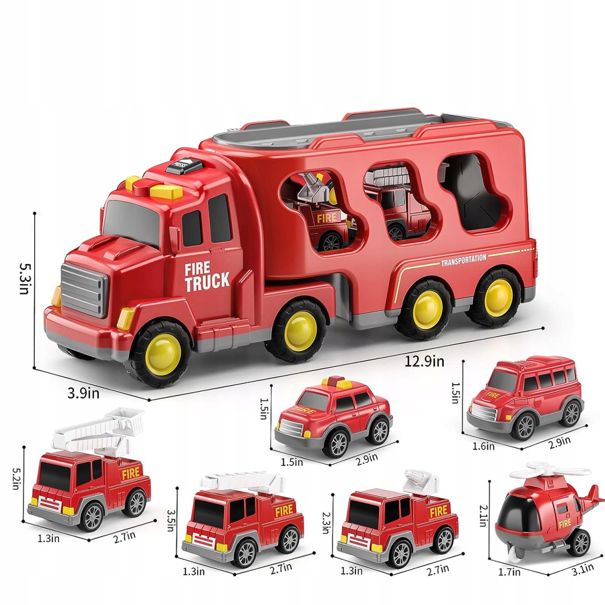 Велика пожежна машина: 5,3 * 3,9 * 12,9 дюйма