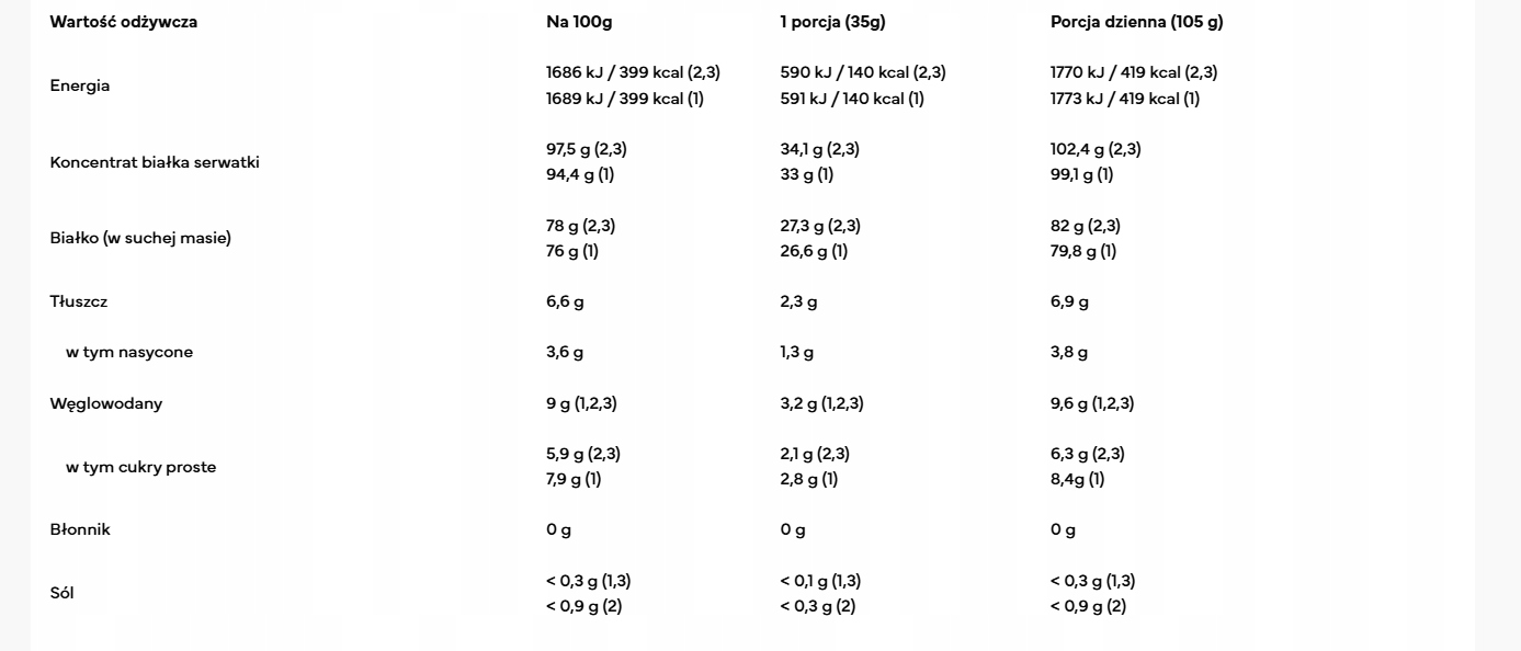 Сироватковий протеїн має високу біологічну цінність (BV), що означає, що організм дуже ефективно засвоює його та використовує для анаболічних процесів. Завдяки делікатному процесу мікрофільтрації при низьких температурах сировина зберігає цінні біоактивні фракції та не містить непотрібних добавок. Продукт пропонується в багатьох привабливих смаках (зокрема, ваніль-кориця, ваніль-банан, малина, білий шоколад, полуниця, шоколад-кокос), які роблять щоденну білкову добавку смачною та легкою для підтримки.