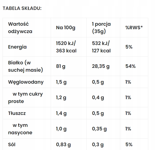 90,2% ізолят сироваткового протеїну (з молока), стабілізатор Е414, регулятор кислотності: яблучна кислота, нежирне какао (для шоколадних смаків), ароматизатор, підсолоджувач : сукралоза. Містить алергени.