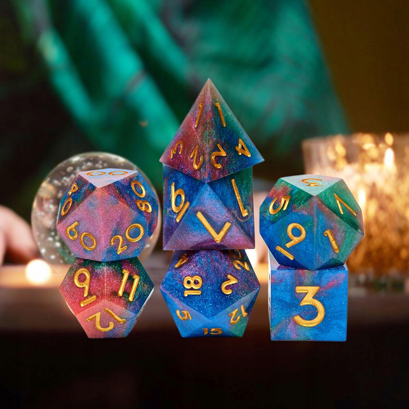 Багатостінні кістки: багатостінні кістки доставляються з 7 різними кубами: D4, D6, D8, D12, D20, D10 (число 0-9), інший D10 (число 00-90). Цифри максимально великі на кожному обличчі, що полегшує читання.