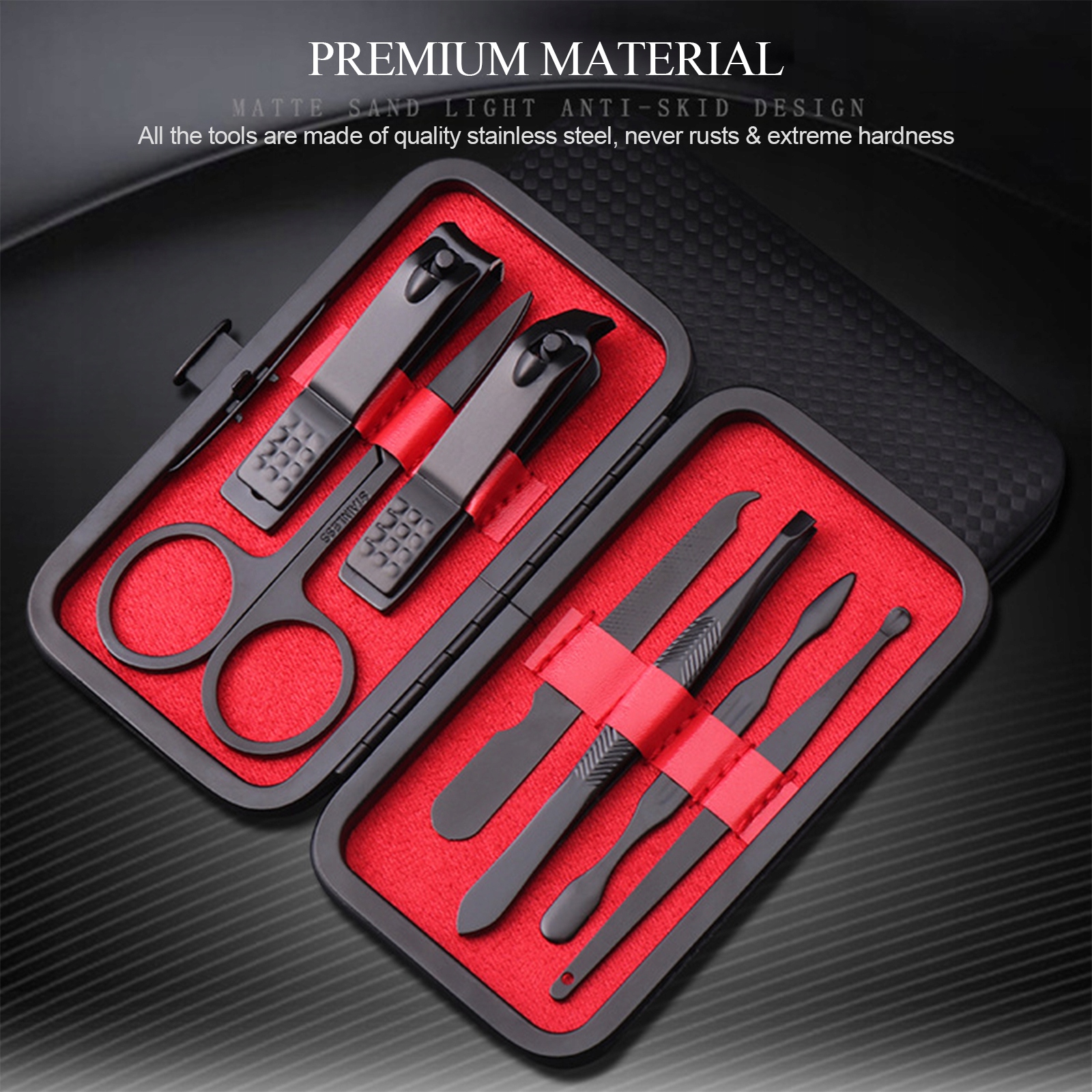 1. [Справа складу] Манікюрний набір оснащений портативною коробкою синтетичної шкіряної шкіри, яку можна легко відкрити за допомогою кнопки.