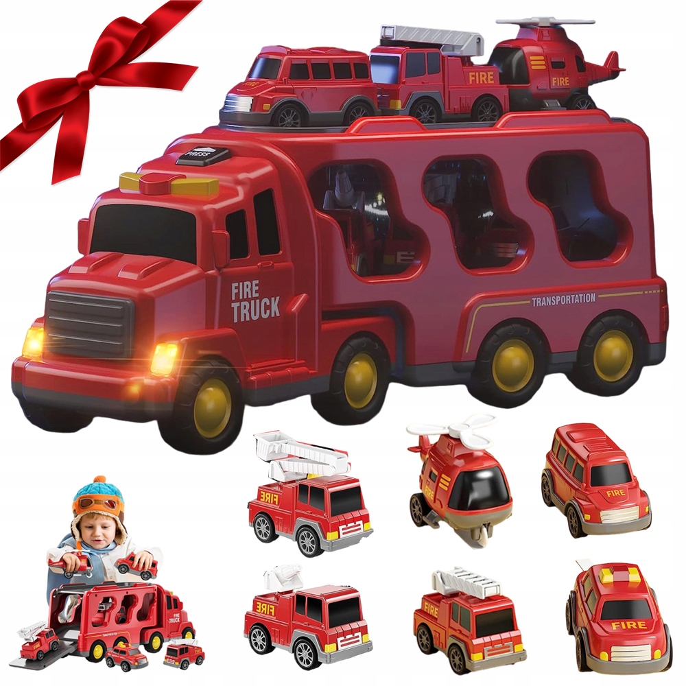 - Створено для маленьких любителів пожежогасіння, включає велику транспортну вантажівку та 6 менших транспортних засобів (пожежну машину, драбину, гелікоптер, спринклерну машину та Позашляховик).