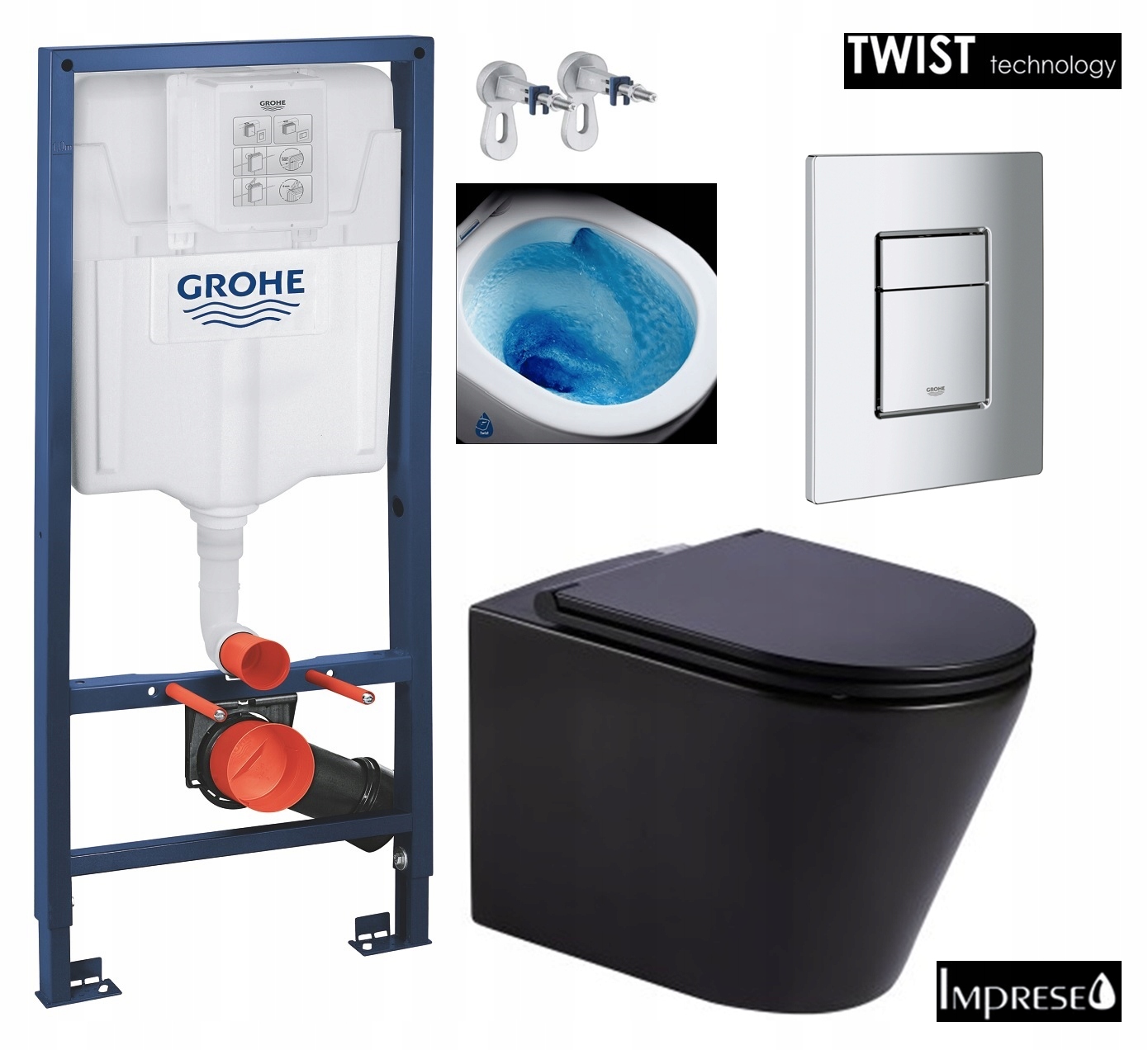 7в1 GROHE WC FRAME SET, УНІТАЗ TORNADO BLACK, КНОПКА MATCH CHROME