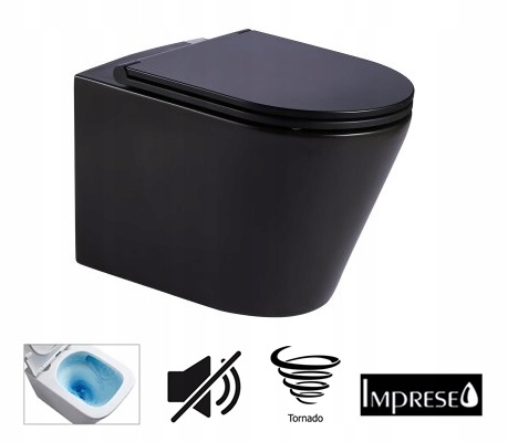 Унітаз Imprese JESS black matt, сантехнічна кераміка з технологією TWIST + сидіння Slim soft-closing з дюропласта