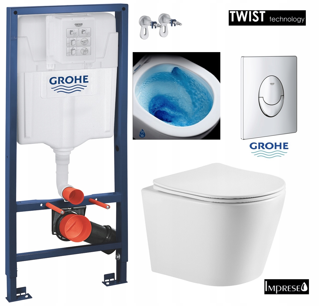 7в1 GROHE WC SET, УНІТАЗ TORNADO IMPRESE, ХРОМОВАНА КНОПКА