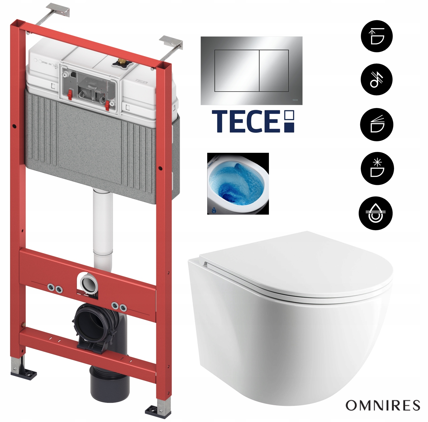 7в1 НАБІР ДЛЯ УНІТАЗУ РАМА TECE УНІТАЗ OMNIRES TORNADO MAT, КНОПКА ХРОМОВАНА