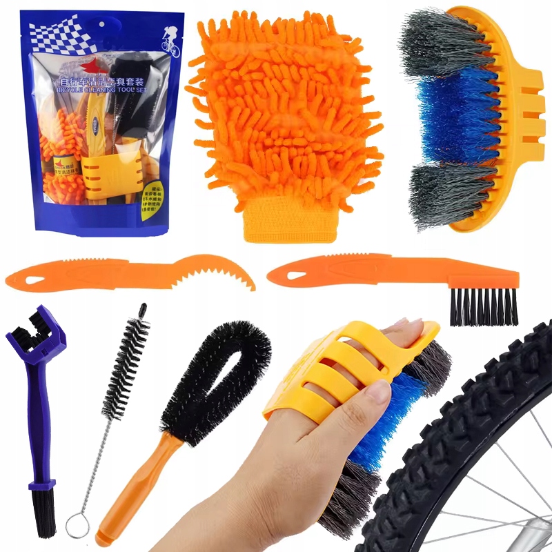 7w1 ZESTAW DO CZYSZCZENIA MYCIA ROWERU ŁAŃCUCHA OPON PIELĘGNACJI SZCZOTKI