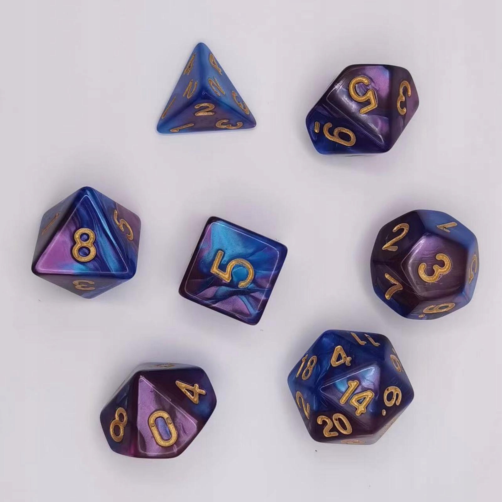 7x багатостінні кубики D6 D4 D8 D10 D12 D20 Постійна гладка фіолетова та синя поверхня