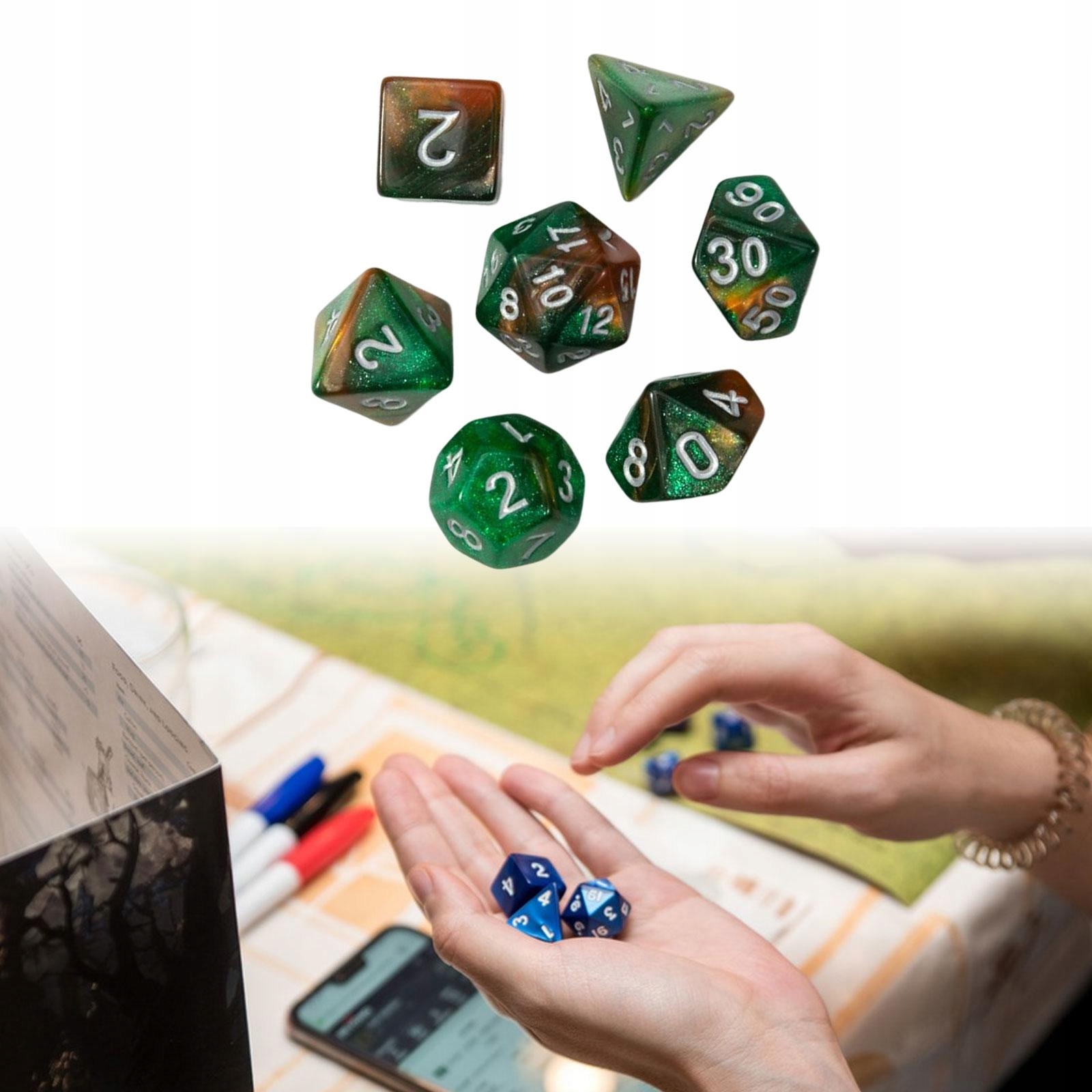 7x D d20 багатосторонніх гральних кубиків, акрилових іграшок з гральними кубиками, зеленого кольору
