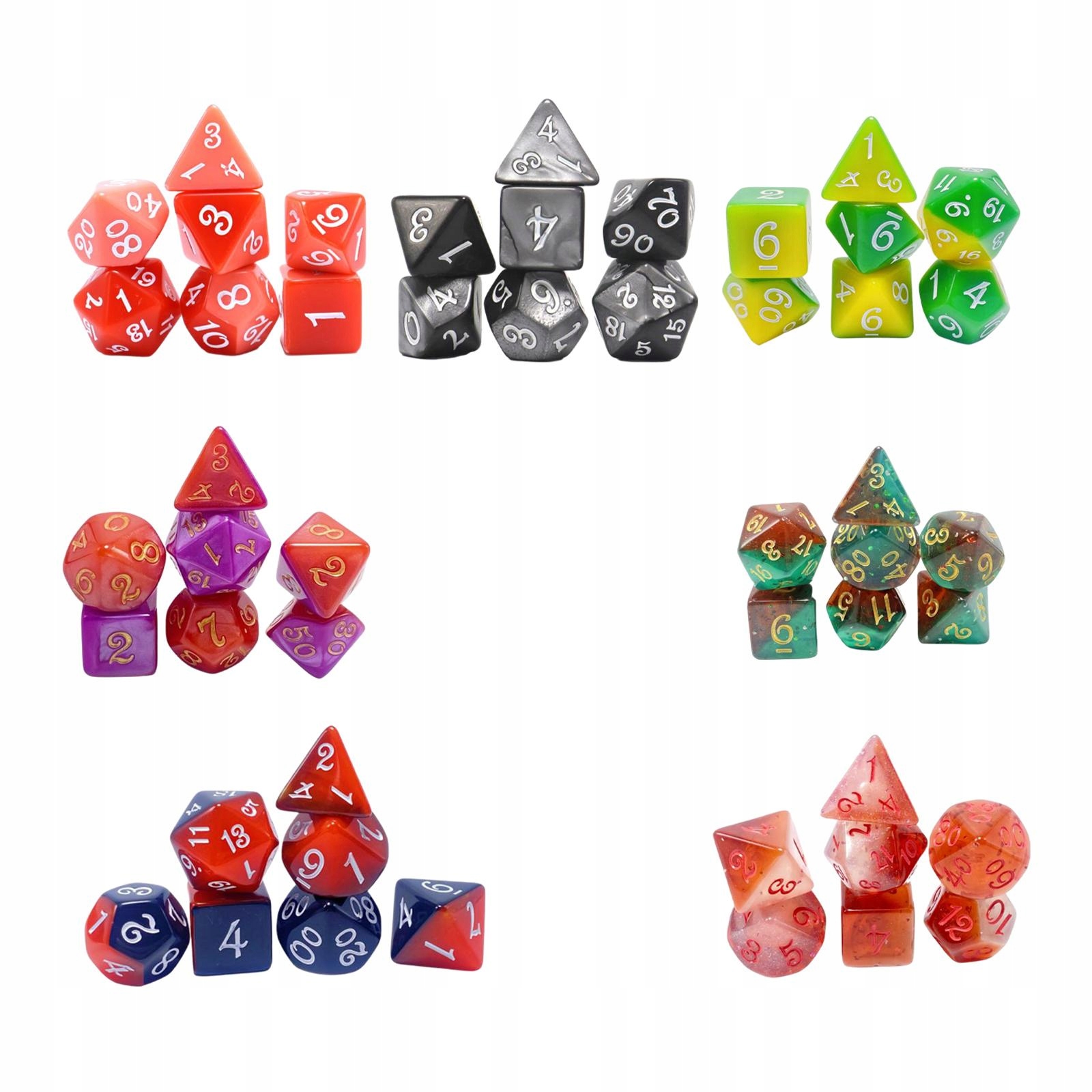 [Пакет містить]: Ви отримаєте 7 наборів кісток з багатогранними кістками. Він містить D20, D12, D10 (00-90 і 0-9), D8, D6, D4.