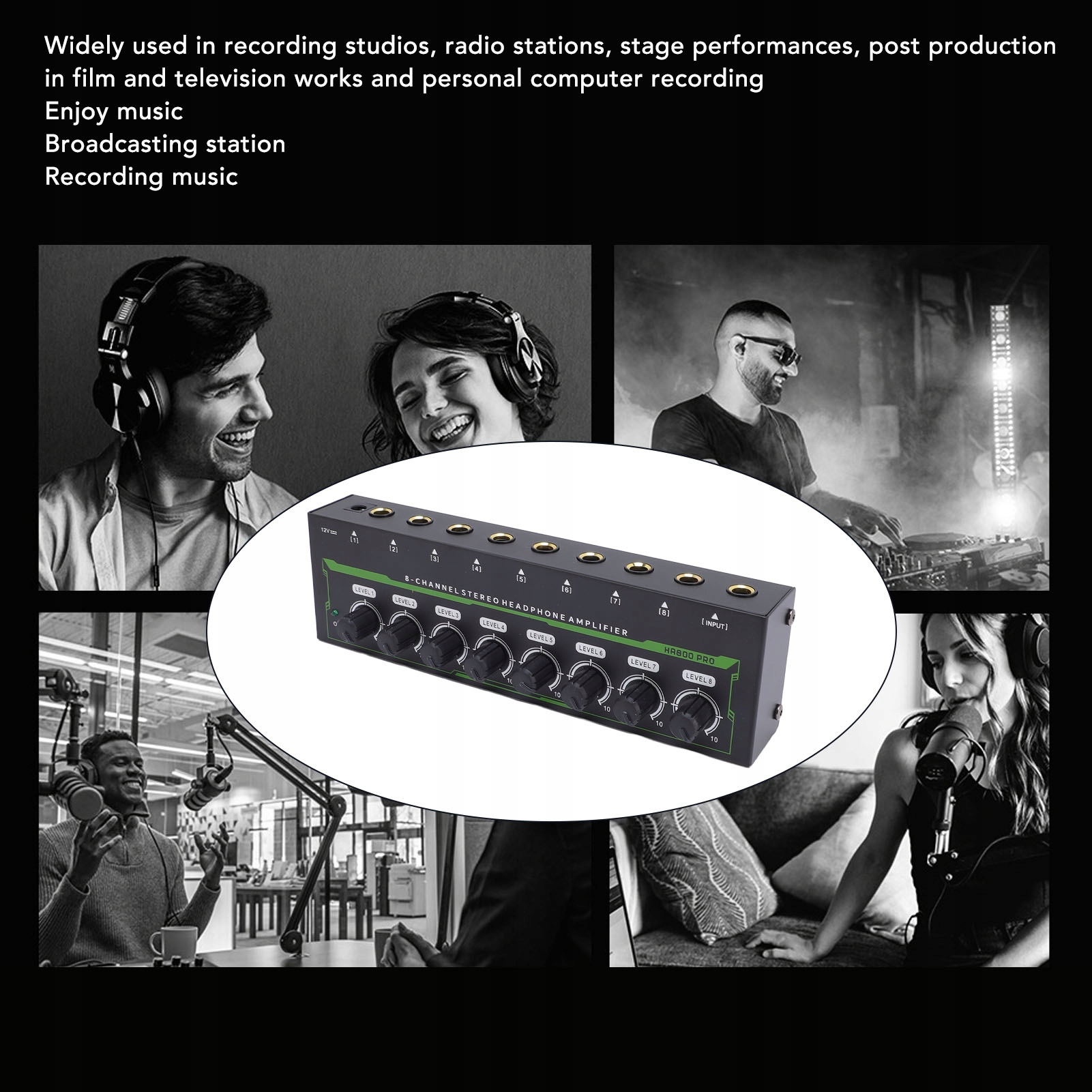2. [8 Вхід 1 Вхід] Цей підсилювач навушників містить 8 вихідних каналів навушників та 1 вхідний канал, що дозволяє багатьом користувачам слухати одночасно.