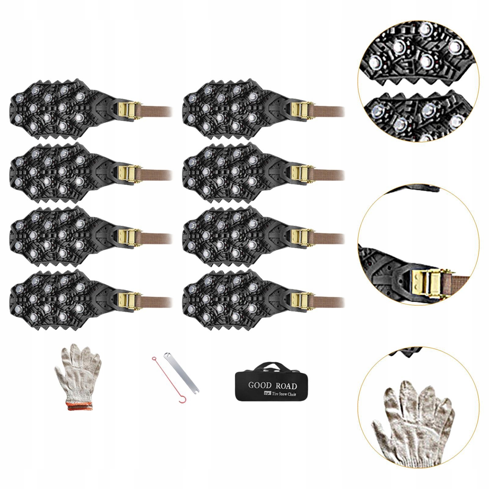 [Матеріал]: снігові ланцюги, виготовлені з матеріалу ТПУ, залишаються гнучкими, не пошкоджуючи шини або ободи. Міцний і делікатний матеріал забезпечує довгострокову продуктивність без упередження цілісності шини
