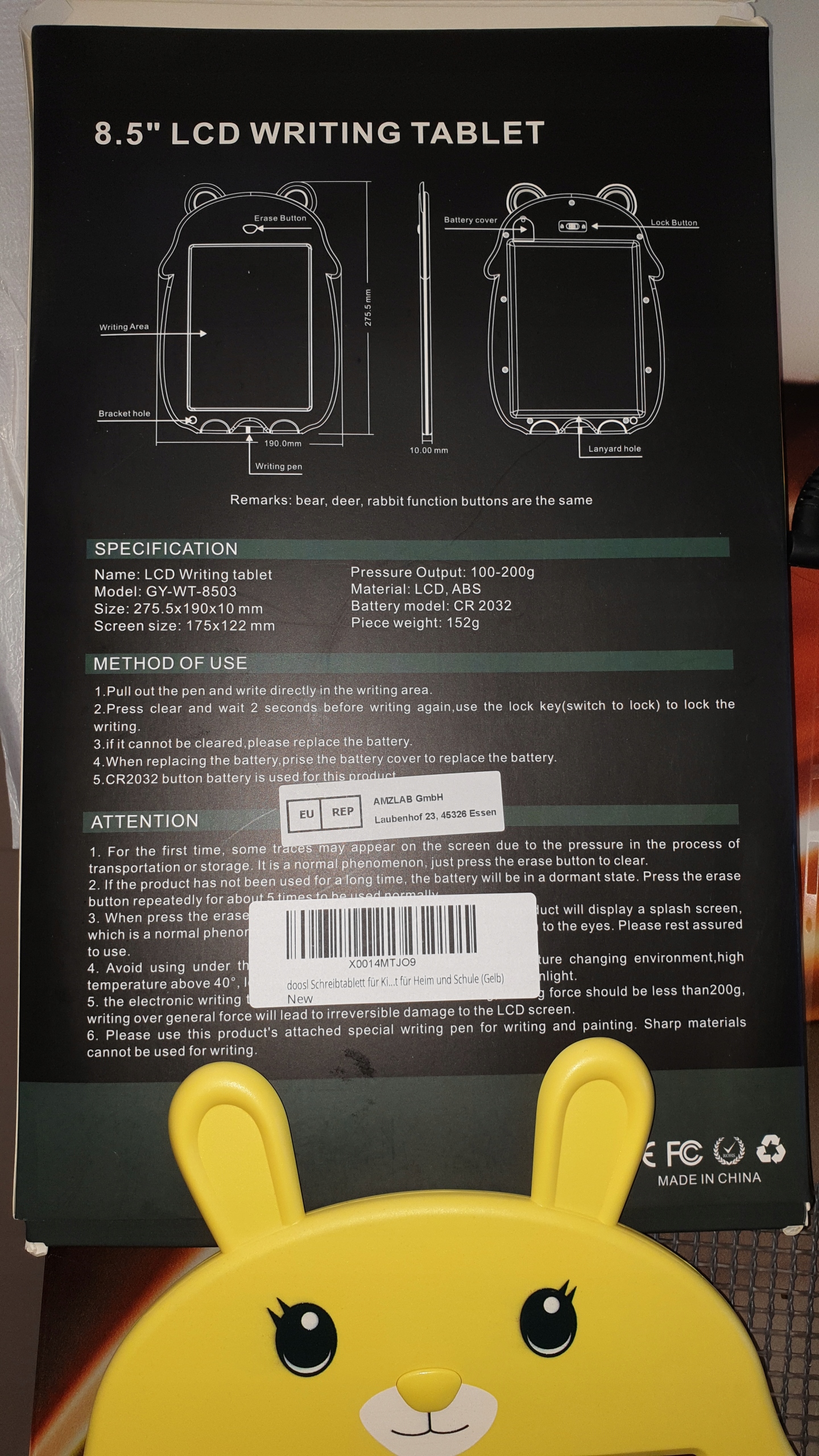 ГРАФІЧНИЙ ПЛАНШЕТ ДЛЯ МАЛЮВАННЯ LCD 8.5" КРОЛИК