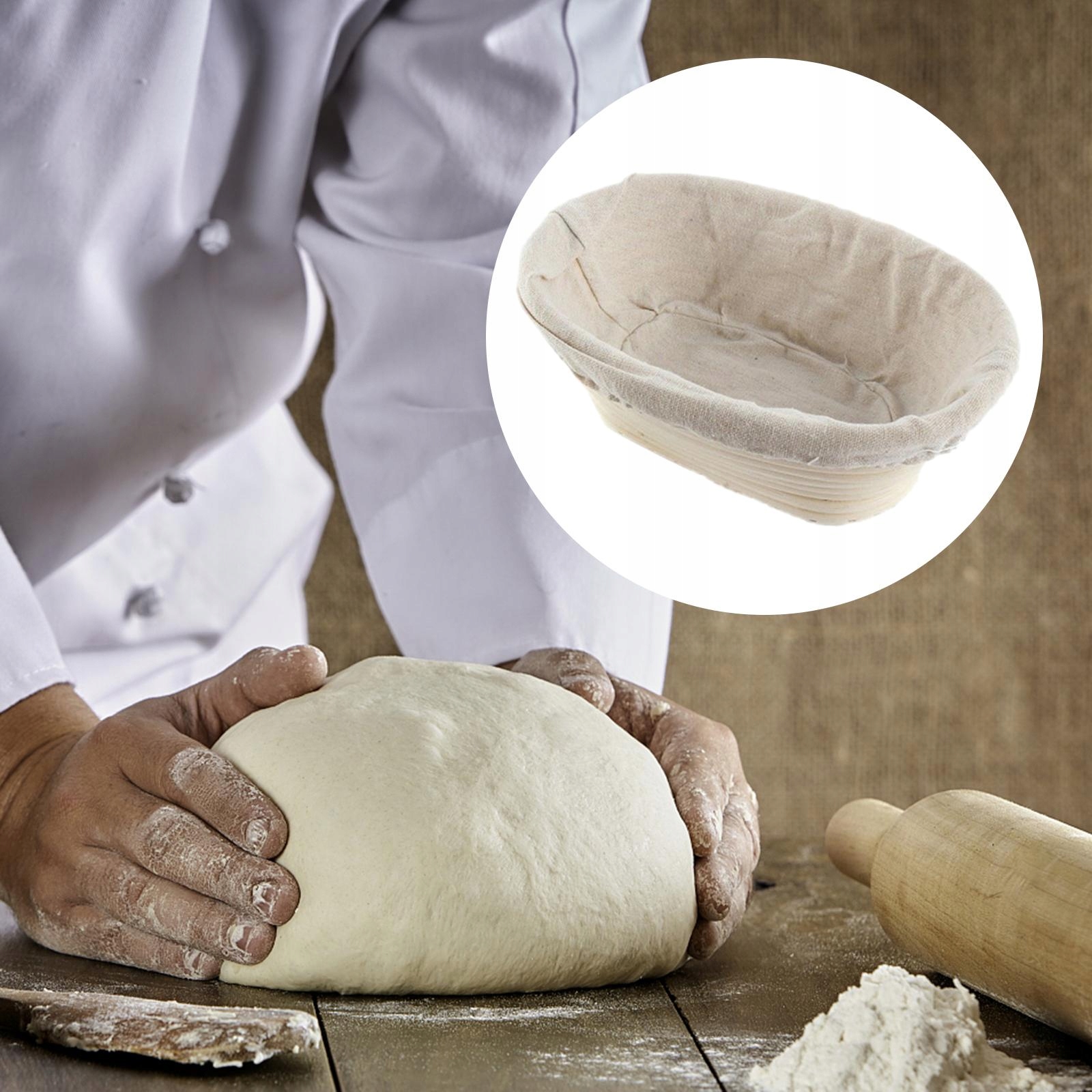 Тканинна підкладка: цей кошик для розстойки постачається з припасованою тканинною підкладкою, яку можна наклеїти.