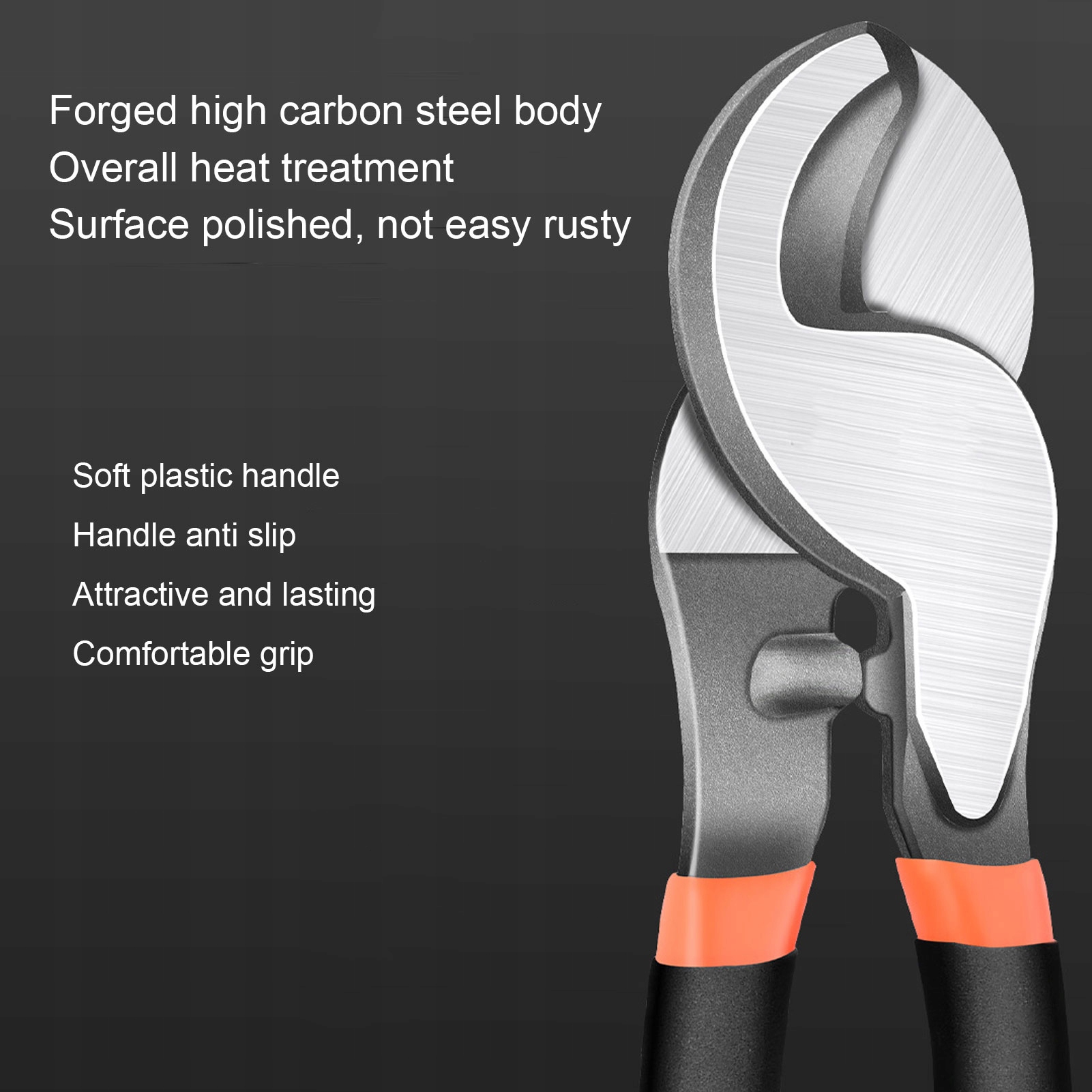 3. Висока вуглецева сталь: Цей різак для кабелю виготовлений з високої вуглецевої сталі, високої твердості та високої міцності, що забезпечує міцність та продуктивність при виконанні виконання завдань різання