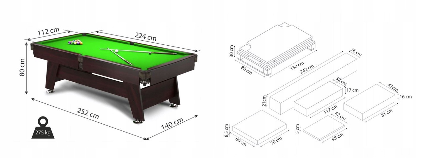 Функціональний переклад Biejadny/ping-pong -унікальне рішення, яке дозволяє швидко перетворити більярдний стіл на елегантний обідній стіл або стіл для пінг-понгу. Завдяки подвійній конструкції, накладка не тільки збільшує функціональність таблиці, але й ефективно захищає більярд від бруду та пошкодження, коли таблиця не використовується. Це практичне та стильне рішення робить вашу більярдну таблицю центром будь -якої події чи зустрічі.