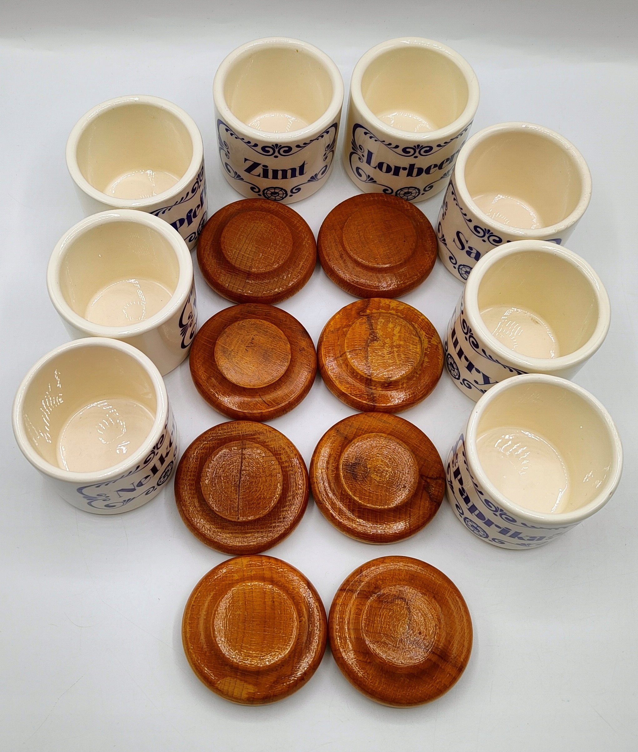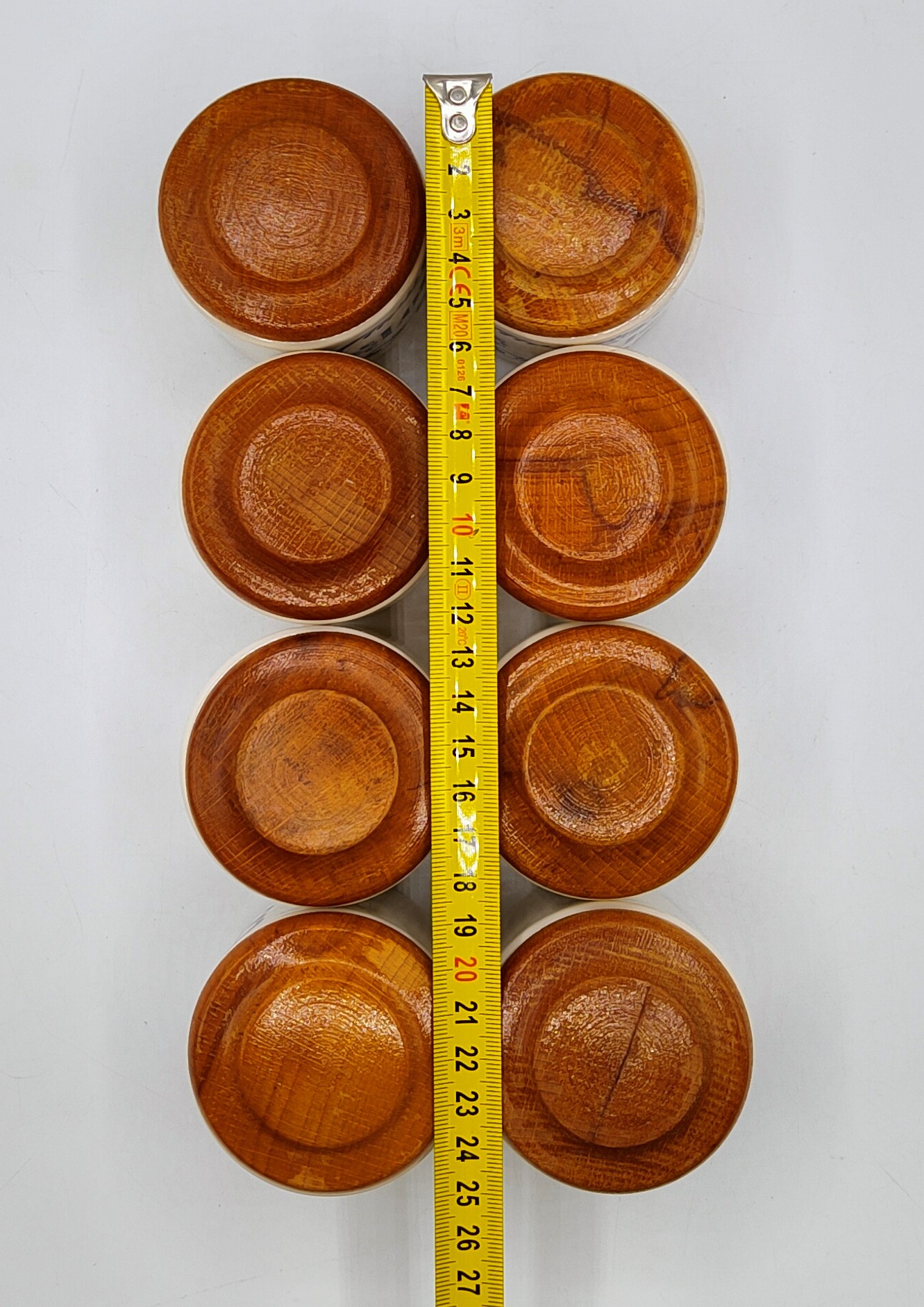 старовинні, стародавні, вісім/8/спеції з етикеткою/написом, порцеляном та деревом, ємністю одного 100 мл.