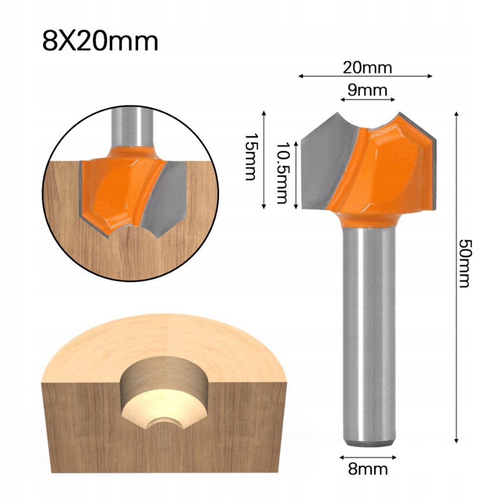 8-мм хвостовик Routeur Bit Фреза для деревини Інструменти для різання твердої деревини 20 мм