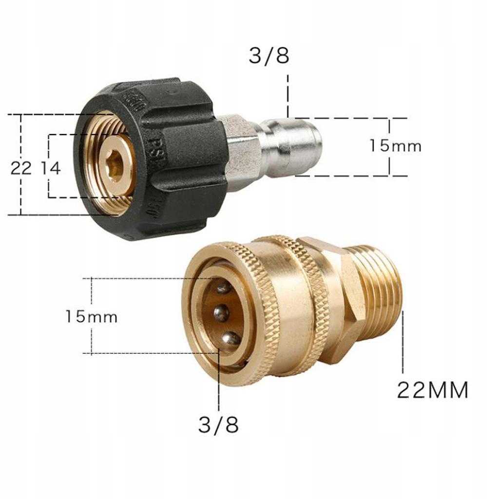 Швидкий роз'єм 3/8" M22 з'єднує насос мийної машини високого тиску зі шлангом або шлангом