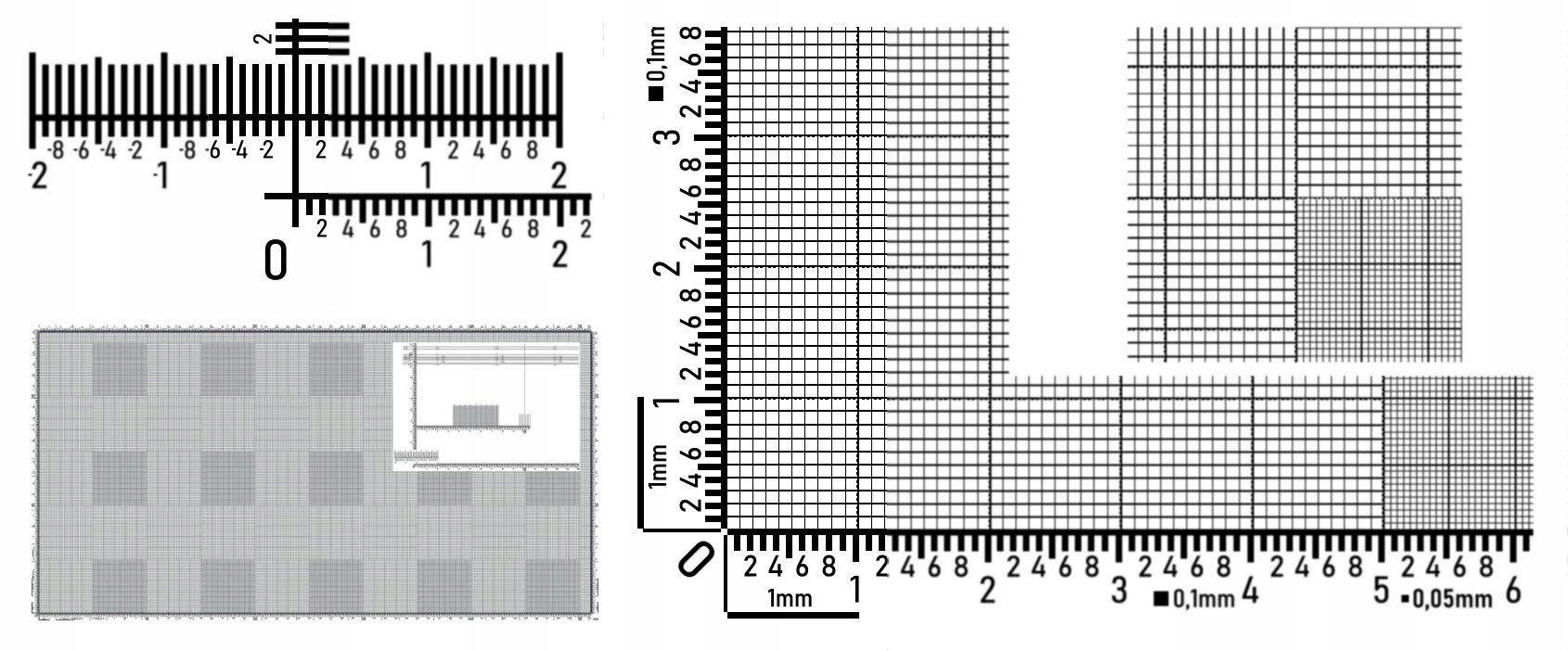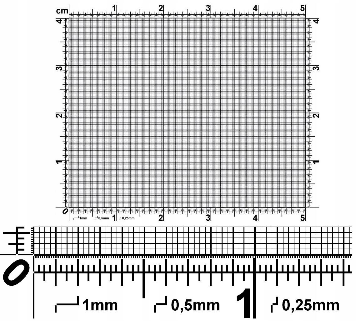 Сетчатая шкала використовується для вимірювання розстояння між вибраними точками на площі макс. 5х4 см Точність виміру 0,25 мм (250 мікрон).