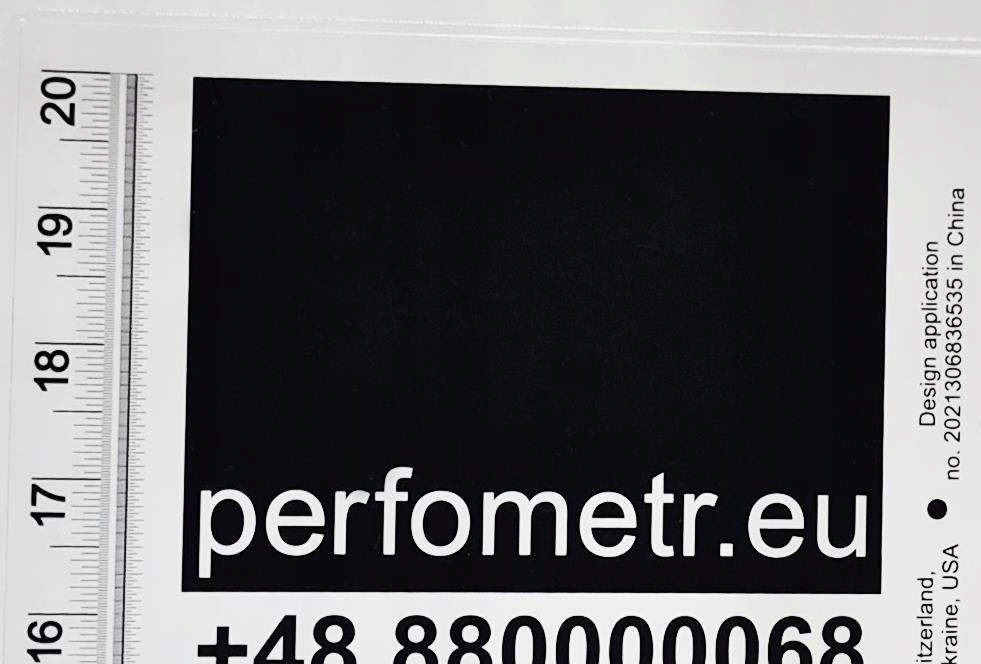 Пропонована копія ПЕРФОМЕТРА, закріплена голограмою, виготовлена з ідентичних матеріалів, з використанням тих самих пристроїв і тієї ж технології складання, що й ЕТАЛОННИЙ ПЕРФОМЕТР b>, який має сертифікат калібрування, виданий Окружним управлінням заходів у Познані. Сертифікат № WM/1669-1/2021.