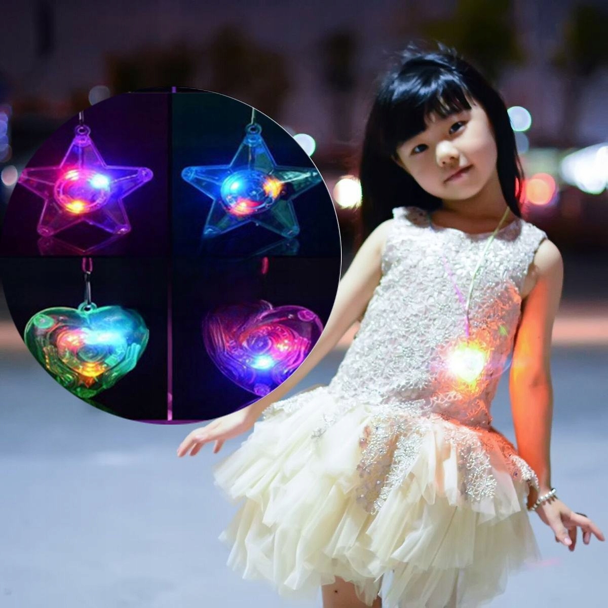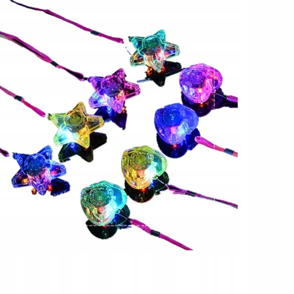 ✅8 * Барвисте пластикове світлодіодне блискуче намисто та блискучі підвіски (4 шт. у формі пентакля та 4 шт. у формі серця)