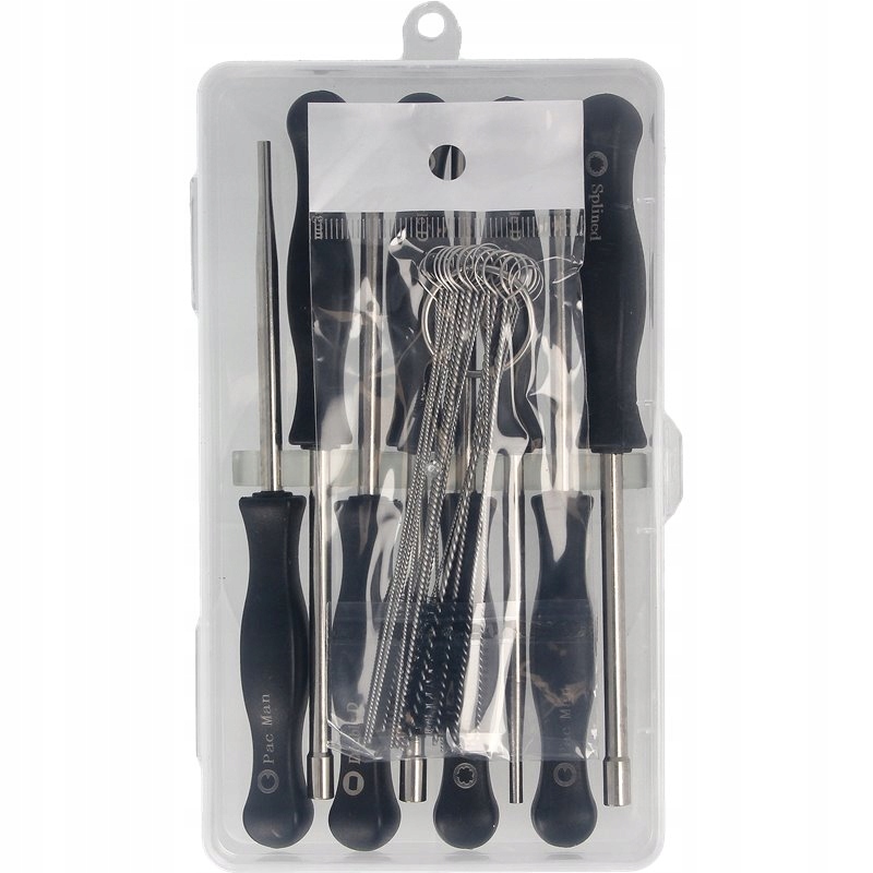 Головною перевагою набору є його універсальність - набір складається з ключів, які підходять до більшості карбюраторів на ринку. Усе це упакованов зручний пластиковий пакетразом із набором для очищення карбюратора.