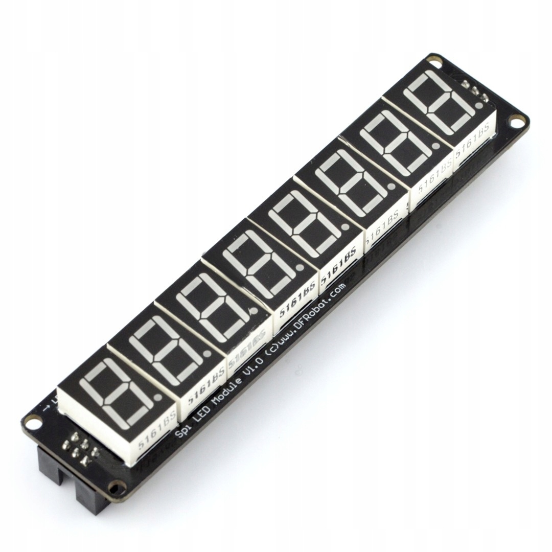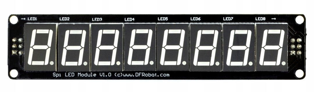 Модуль з вісьмома 8-сегментними дисплеями дозволяє відображати цифри з крапками та деякими літерами. Плитка спілкується через шину SPI через плагіни IDC, вона також має монтажні отвори.