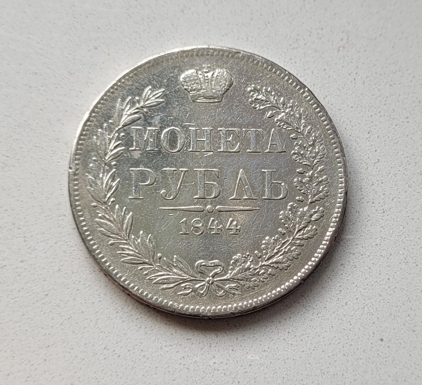 8) РОСІЙСЬКА ПЕРЕДІЛКА, срібло - 1 рубль - 1844, Варшавський монетний двір