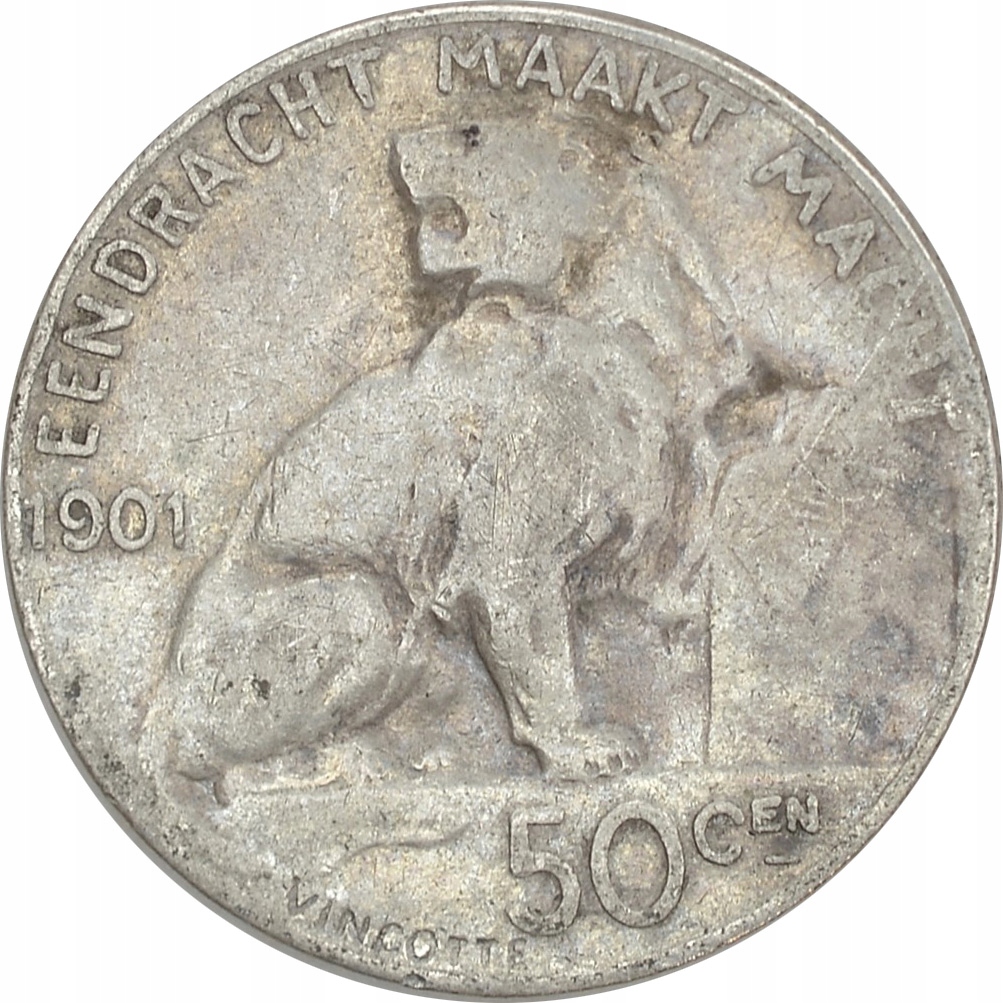 8.БЕЛЬГІЯ, ЛЕОПОЛД II, 50 САНТИМІВ 1901 ДЕР