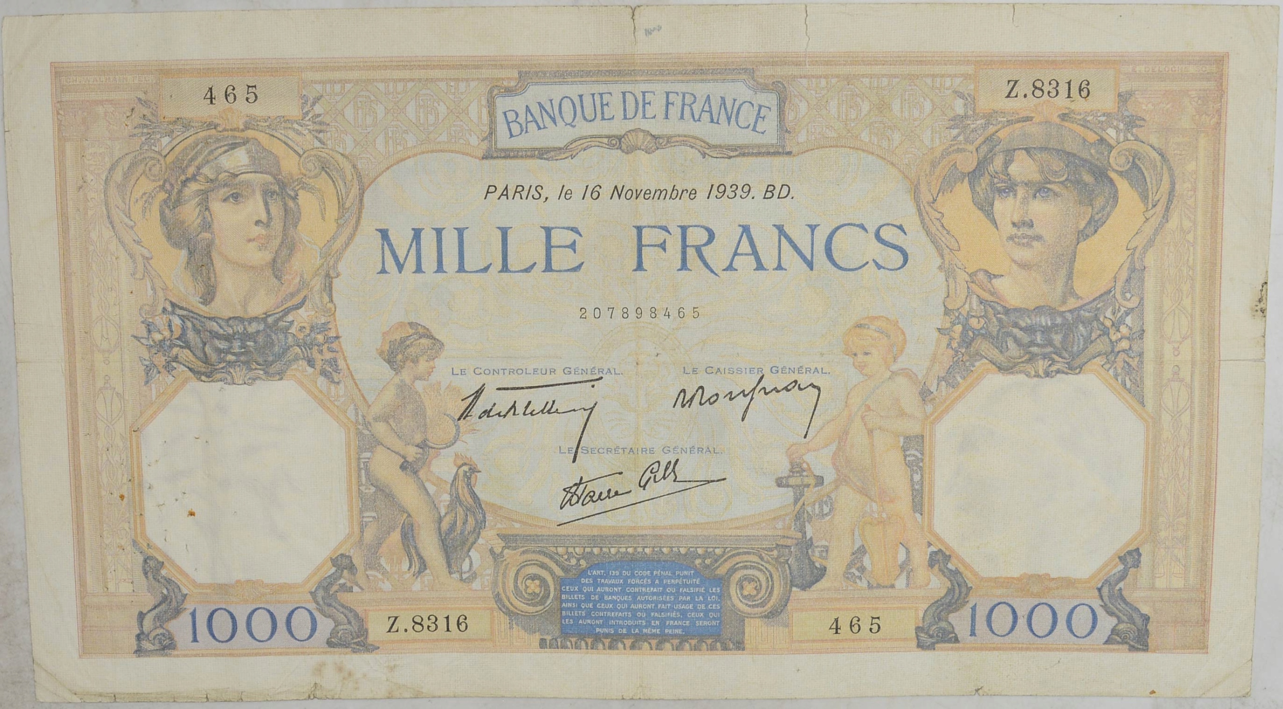 8.db.Francja , 1000 франків 1939, P.90.c , St.3-