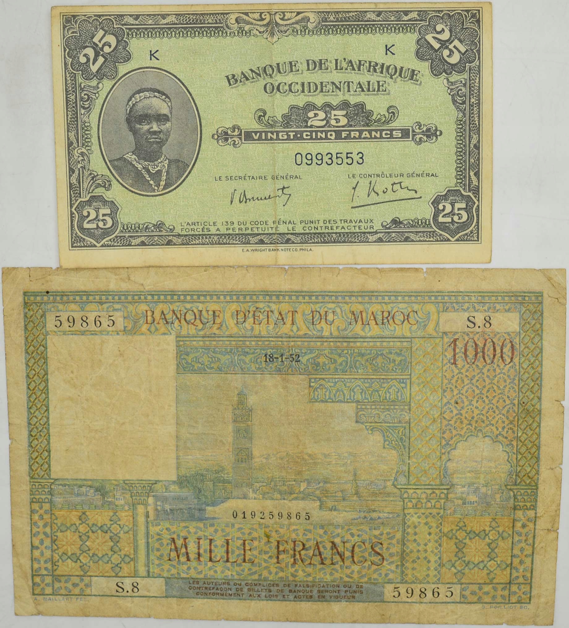- Опис: У набір входять банкноти наступних номіналів: Французька Західна Африка - 25 франків 1942 (St.3+), Марокко - 100 франків 1952 (3/4 +, розрив і тріщина в полі). Рідко