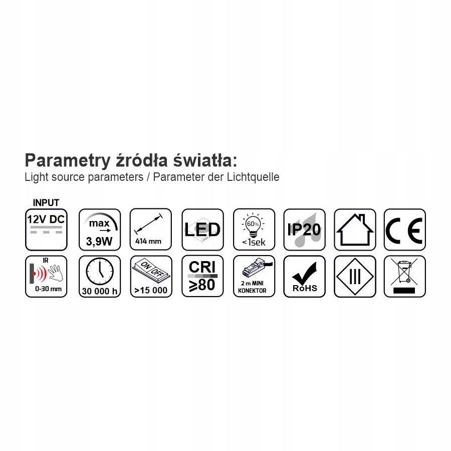Завдяки вбудованому безконтактному перемикачу LED освітлення вмикається відразу після відкриття ящика і вимикається відразу після його закриття, що не витрачає енергію.