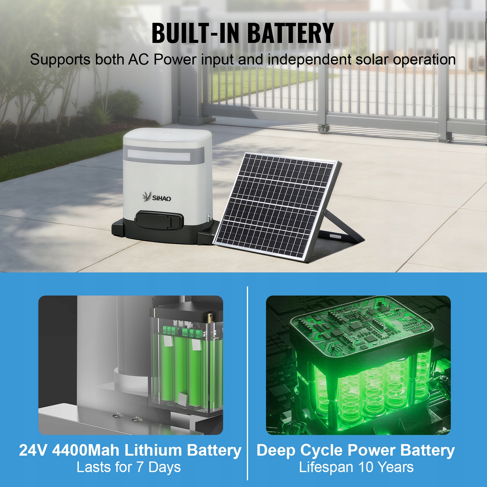 Цей механізм відкривання розсувних воріт, який ідеально підходить для під’їздів, під’їздів і безпечних зон, поєднує в собі потужність, інтелект і екологічну роботу для потреб сучасної автоматизації воріт. Простий у встановленні та довговічний, він пропонує надійне рішення для посилення контролю доступу та безпеки власності.