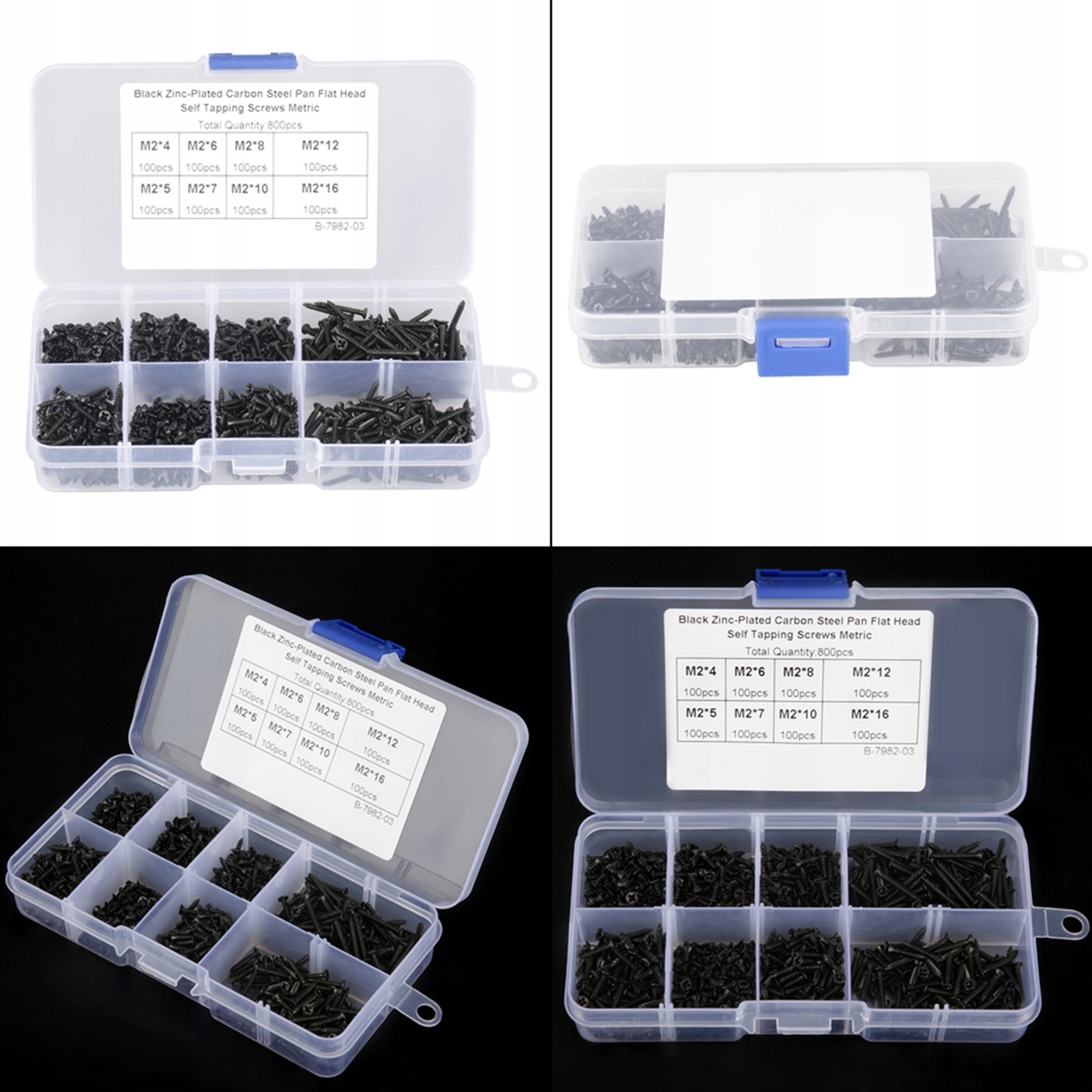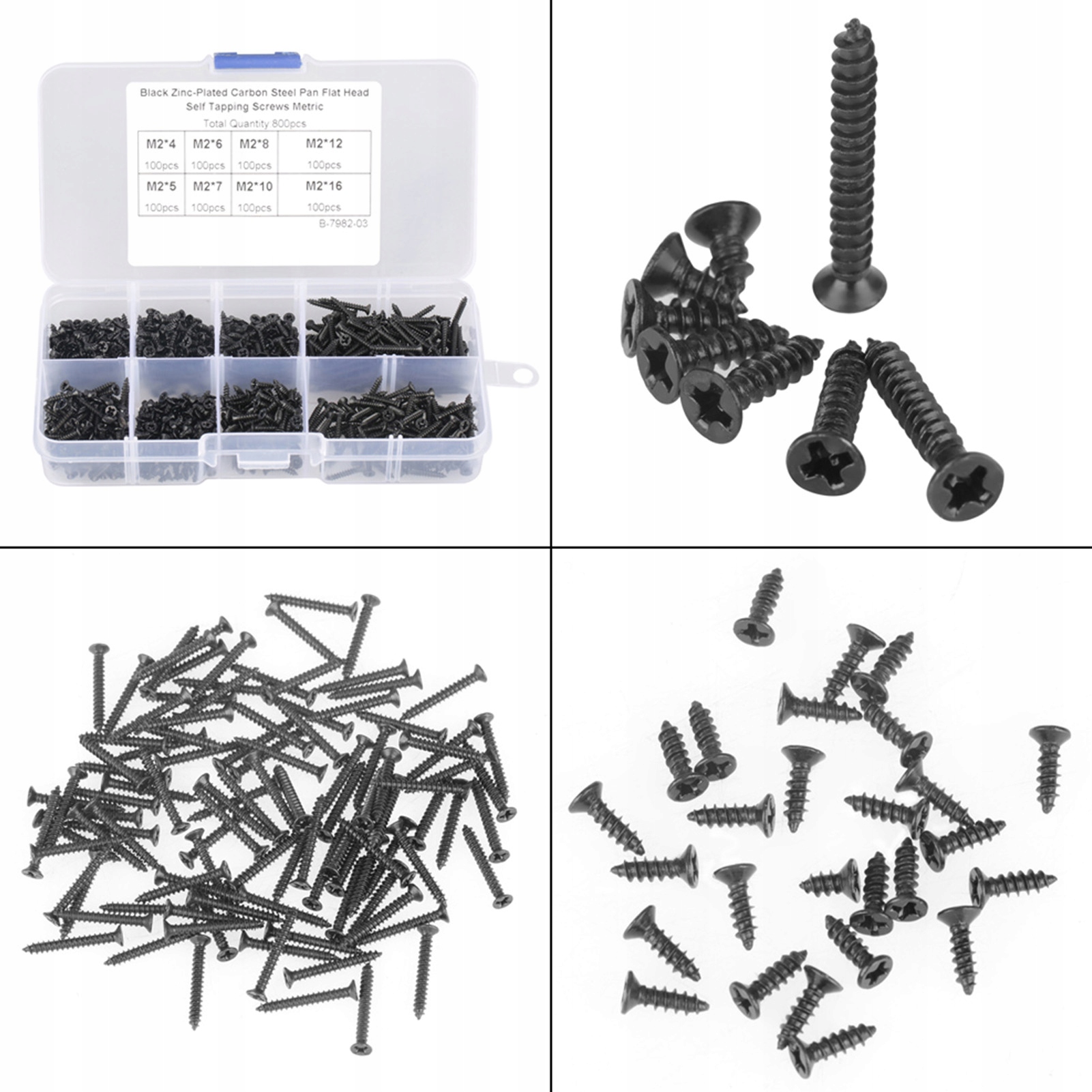 Набір саморізів M2 з плоскою головкою, чорна вуглецева сталь, 800 шт.