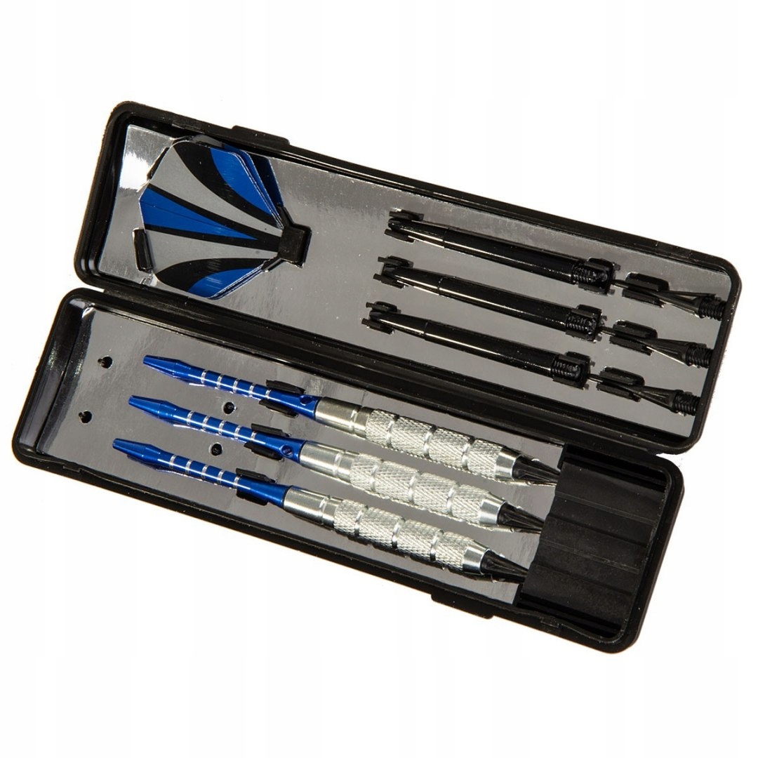 - У набір входить: набір з трьох дротиків, 3 пір'я, 3 запасних наконечника, 3 кепки, футляр