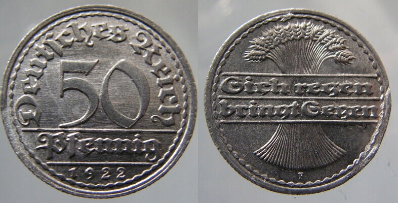8359. НІМЕЧЧИНА, 50 ПФЕНІГІВ, 1922 F. ST 1-