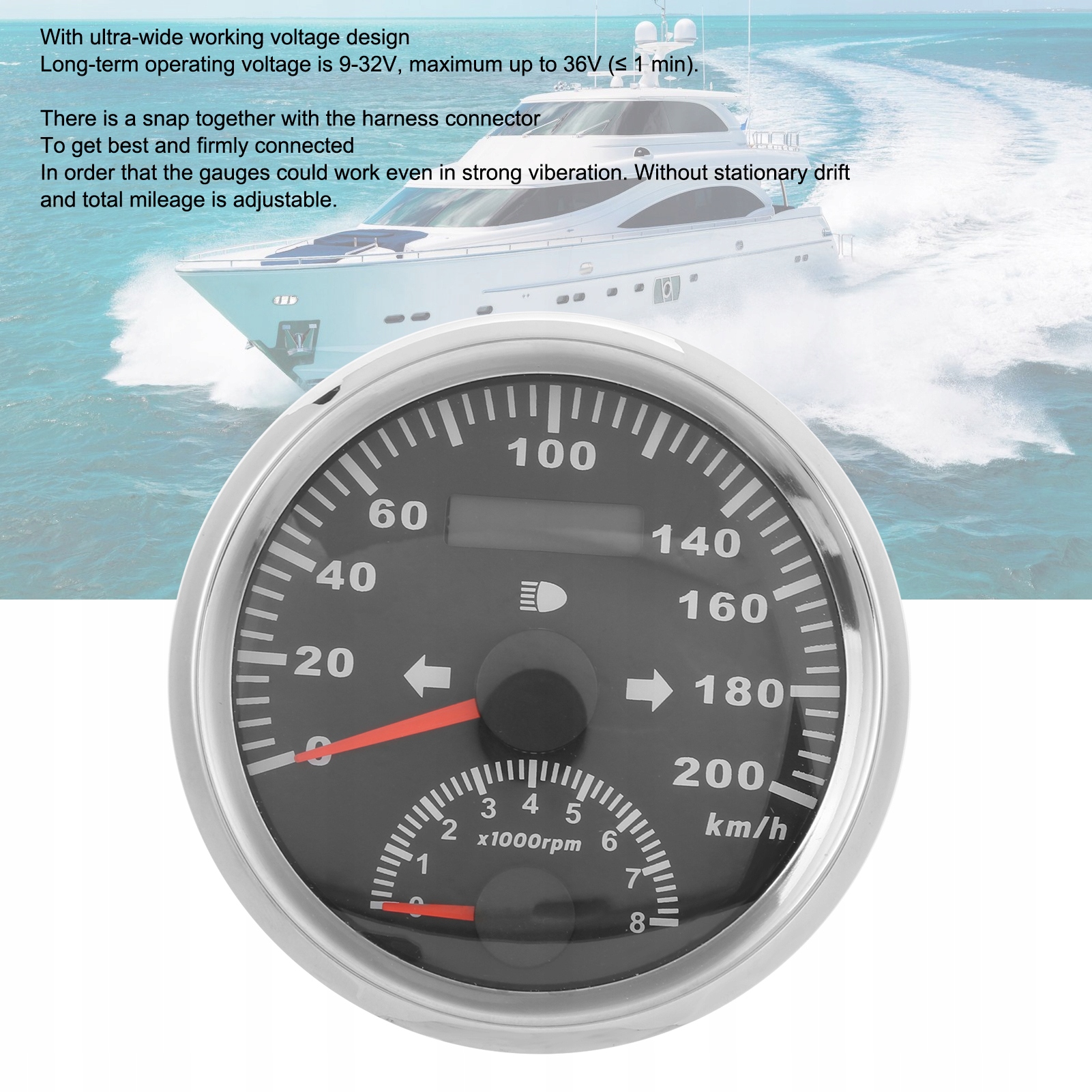 5. Оснащений вигнутим склом з функцією протизапотівання. Завдяки надширокій конструкції робочої напруги довготривала робоча напруга становить 9–32 В, максимум до 36 В (менше та дорівнює 1 хв).