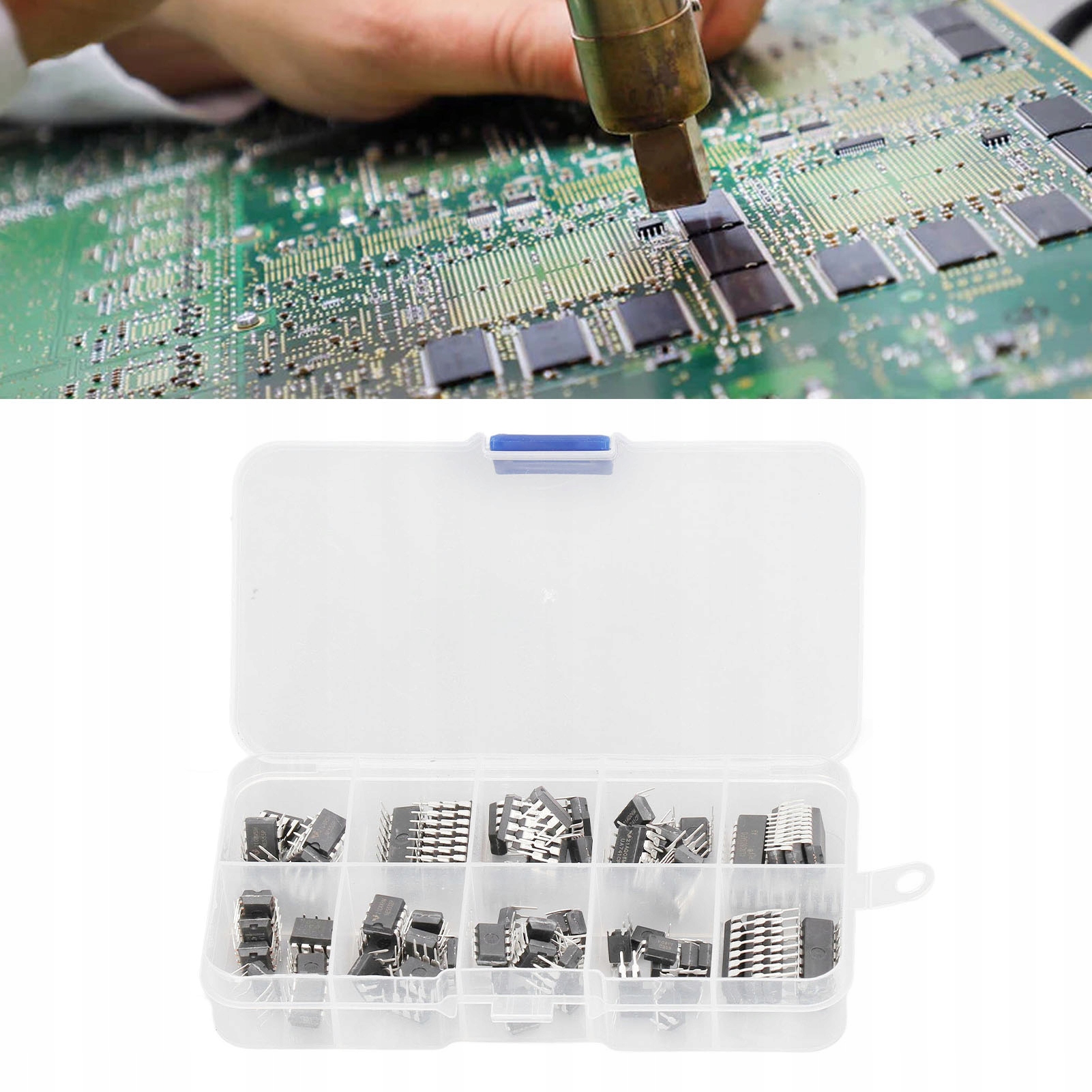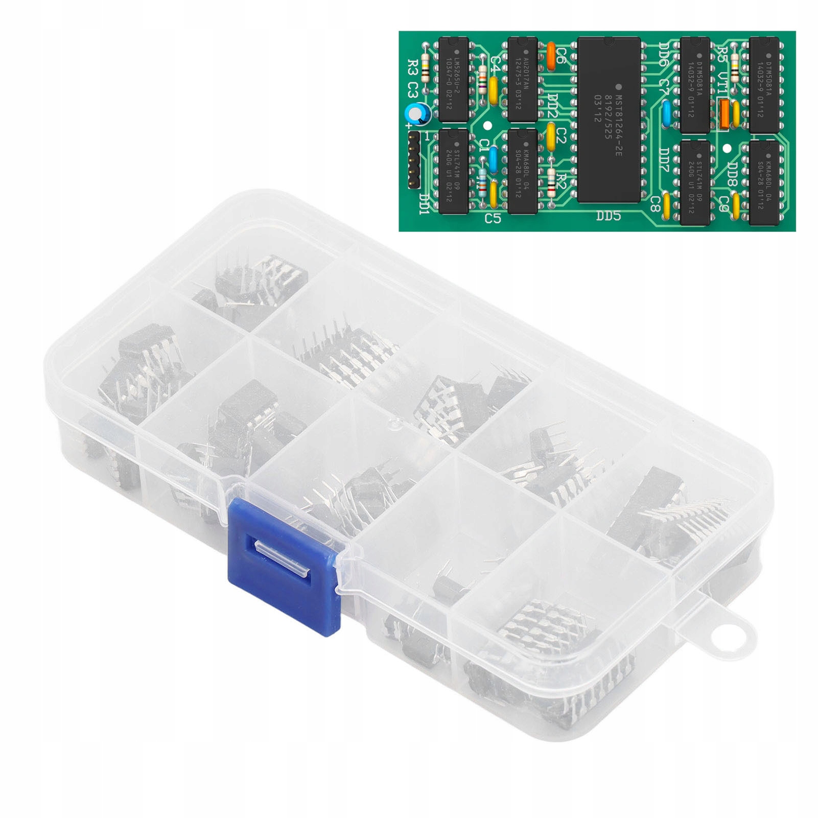 1. 10 специфікацій: цей комплект містить 10 специфікацій мікросхем, а саме NE555, LM324, LM393, UA741, ULN2803, LM358, LM386, NE5532, ULN2003, PC817.