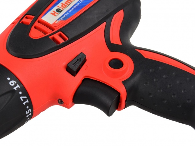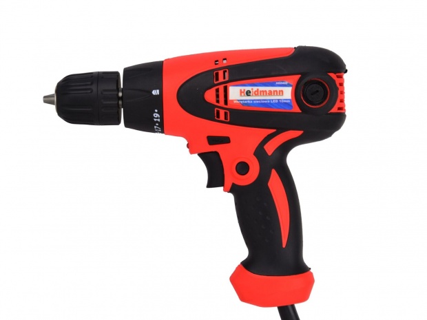 Дриль-шуруповерт HEIDMANN, оснащений електричним щітковим двигуном потужністю 850 Вт, — це пристрій, що характеризується високою якістю виготовлення та сучасним дизайном. Міцна конструкція і невелика вага пристрою роблять його незамінним в кожному будинку, гаражі, а також при ремонті і складанні меблів. Завдяки регульованій швидкості обертання дриль/шуруповерт забезпечує плавний запуск і відмінний контроль під час свердління або загвинчування. Викрутка має перемикач напрямку обертання (вправо/вліво) і фіксатор курка.
