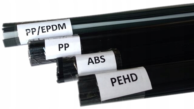 - 4 типи профілів для зварювання пластмас двох форм: стрічка 8x2 мм і трикутник зі стороною приблизно 4 мм,