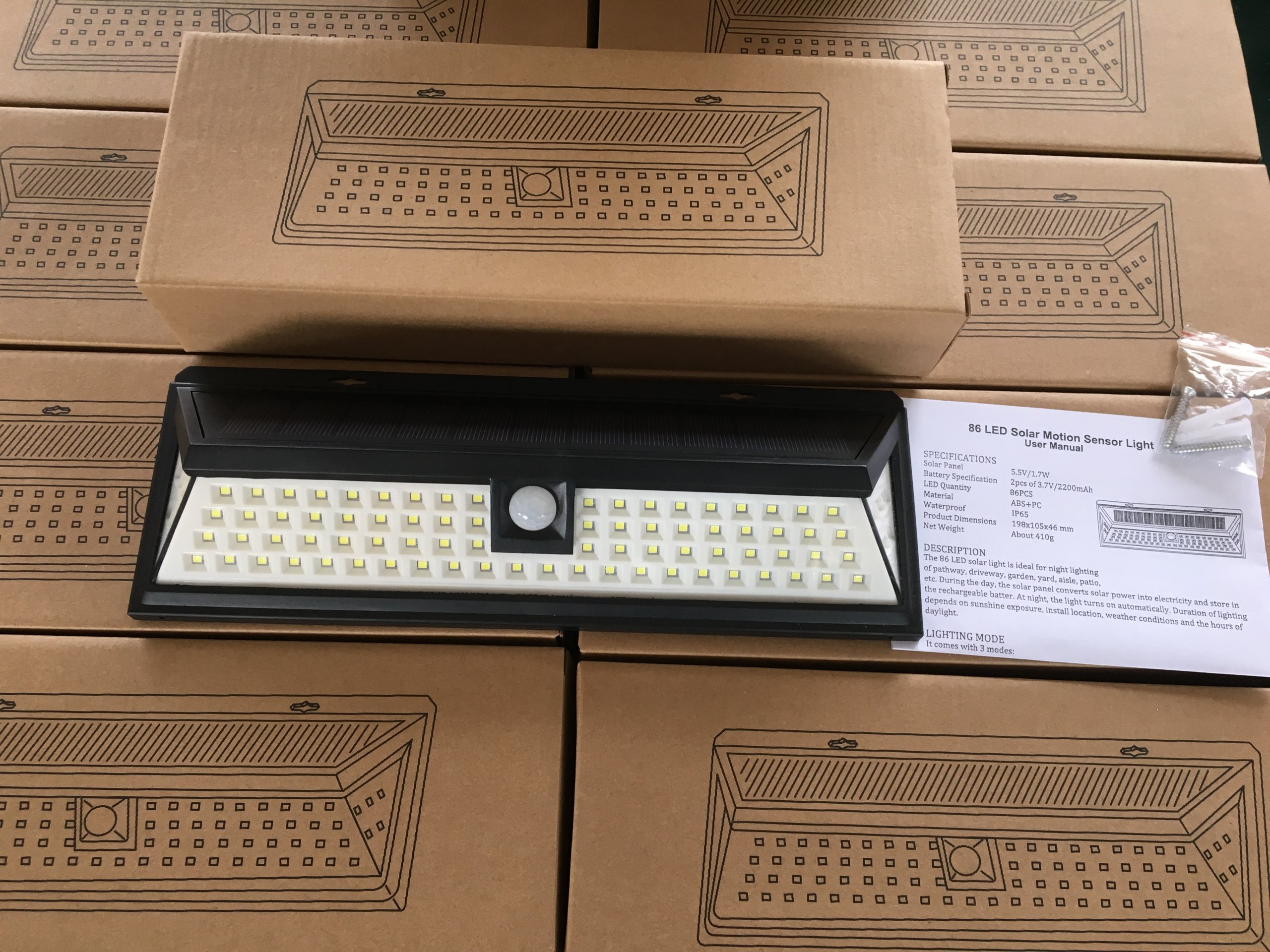 86 LED сонячна лампа, сутінки, 3 режими роботи.